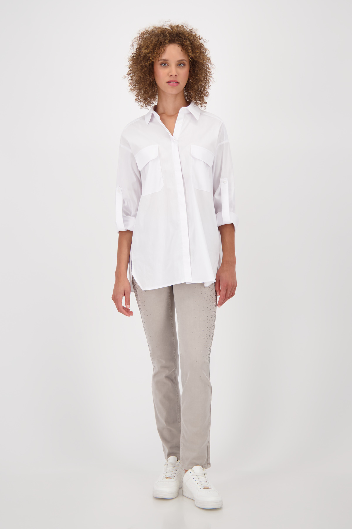 Táto blúzka vyrobená z kvalitnej bavlnenej zmesi s elastickým materiálom sa mimoriadne pohodlne nosí.