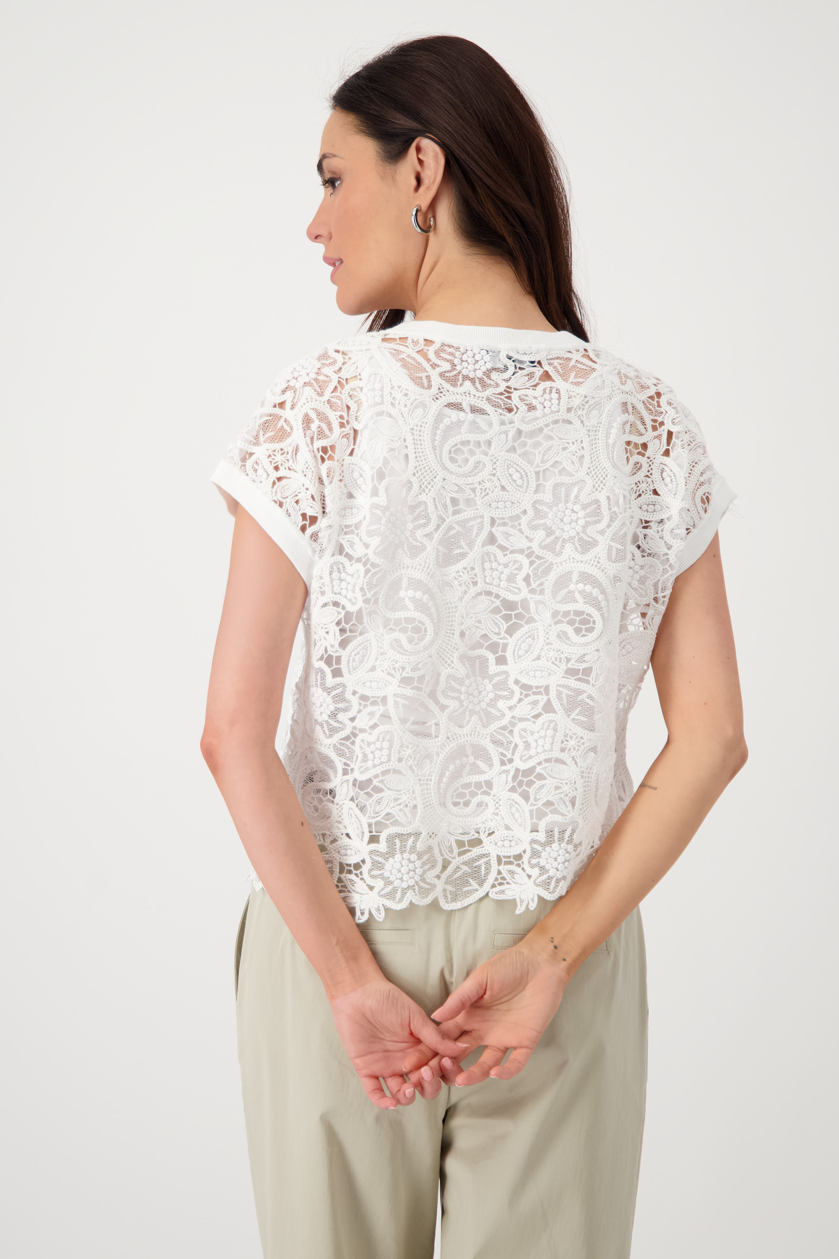 Táto košeľa je vyrobená z kavlitnej zmesi bavlny a kombinuje jemnú čipku s kvetinovým vzorom
