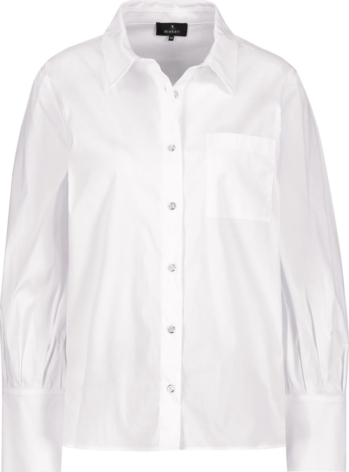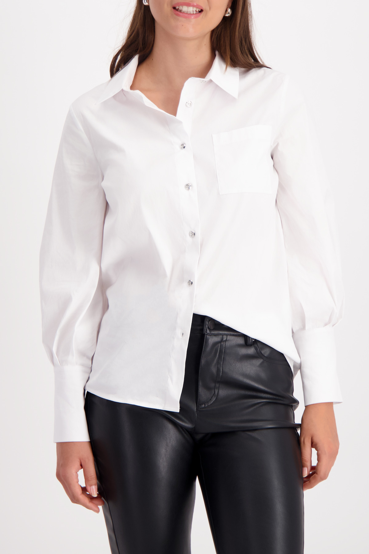 Táto štýlová košeľová blúzka vyrobená z vysoko kvalitnej bavlnenej zmesi s ozdobnými gombíkmi a záhybom v sebe spája eleganciu a pohodlie.