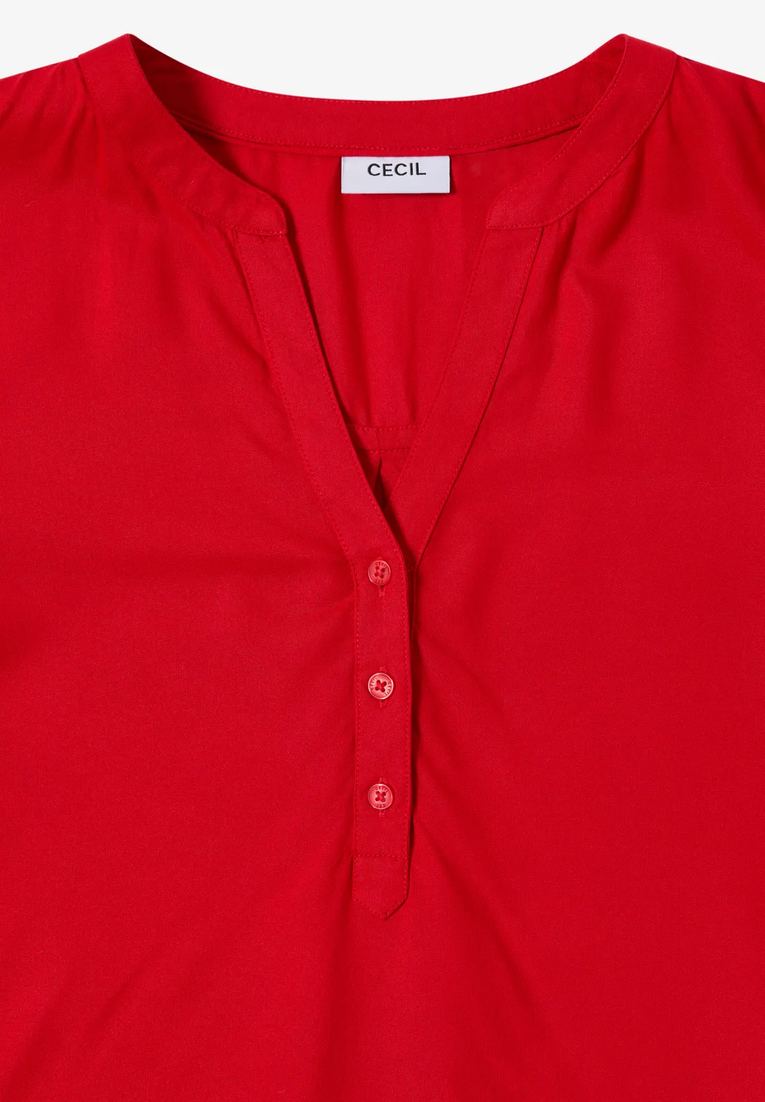 Táto jednofarebná tunika od značky CECIL pre ženy má rozdelený výstrih a ozdobné zapínanie na gombíky.