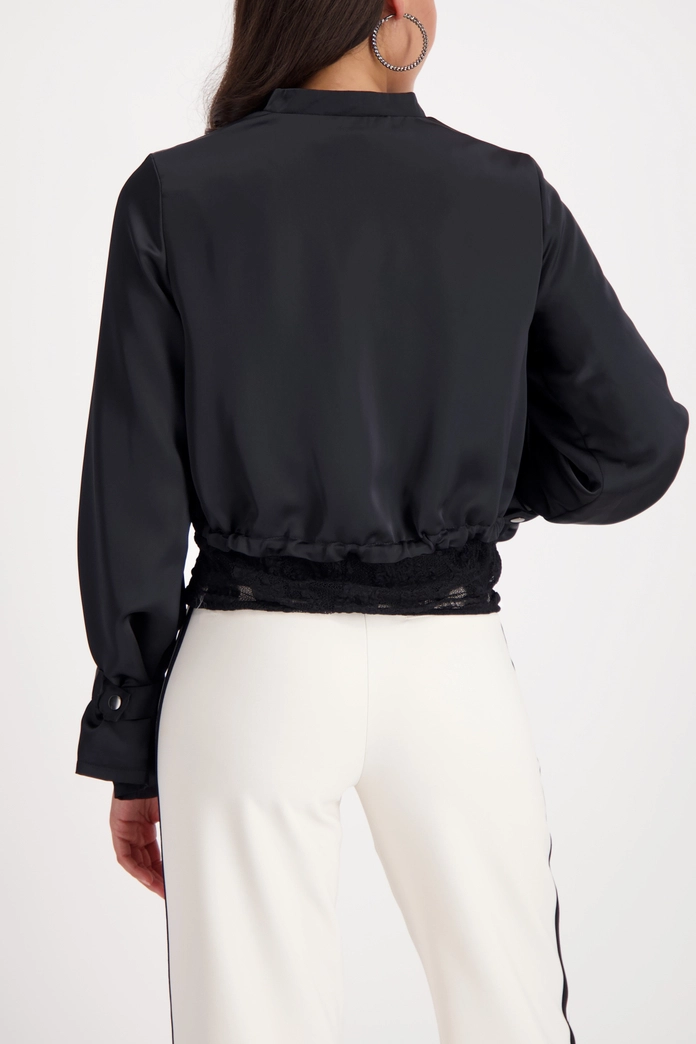 Elegantný blúznik v saténovom vzhľade so štýlovým zaväzovacím opaskom a pútkami na rukávoch – dokonalý módny doplnok!