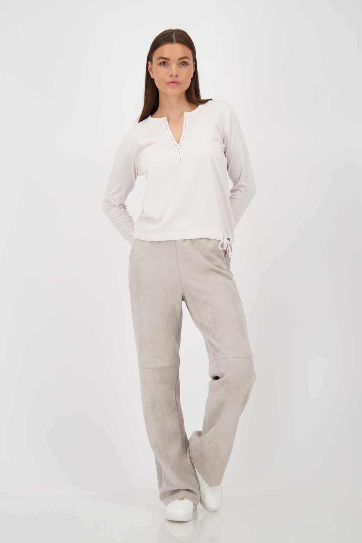 Táto blúzka z padavej viskózy kombinuje sofistikovaný saténový vzhľad vpredu s elastickým pohodlím.