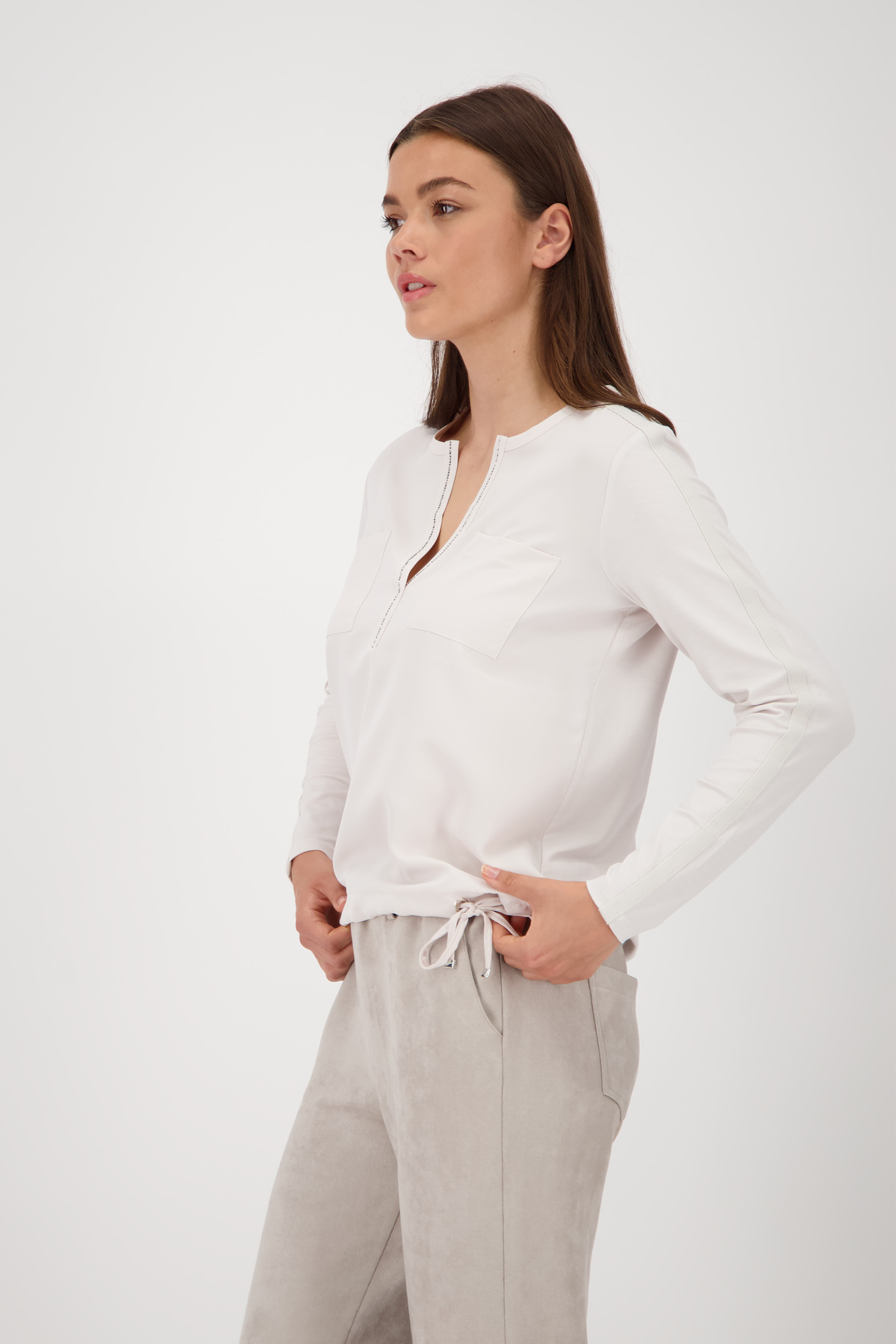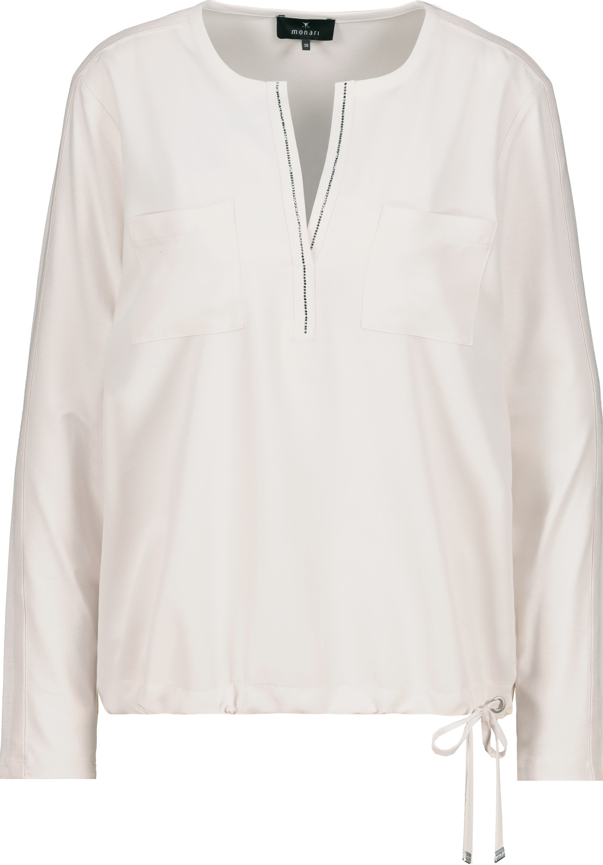 Náprsné vrecká, prúžok pozdĺž rukávov a sťahovacia šnúrka so zaväzovaním na leme dodávajú štýlové akcenty – ideálne pre ženský vzhľad so špeciálnym detailom.