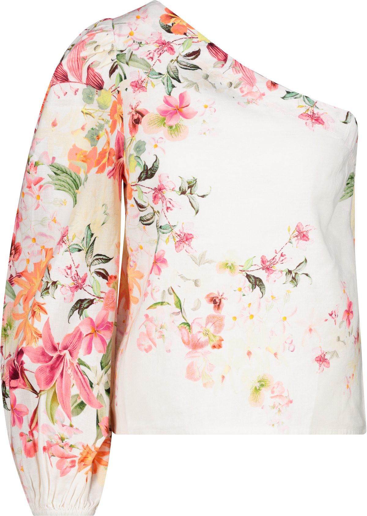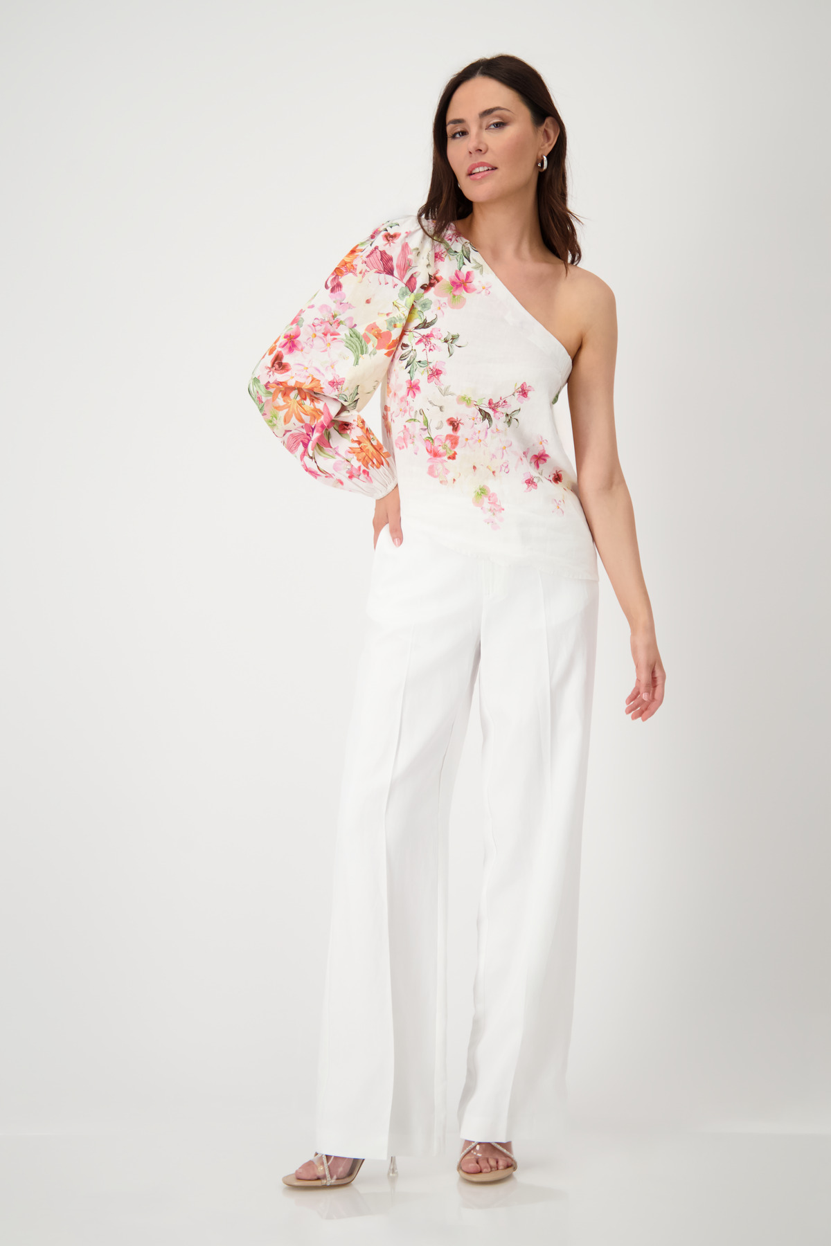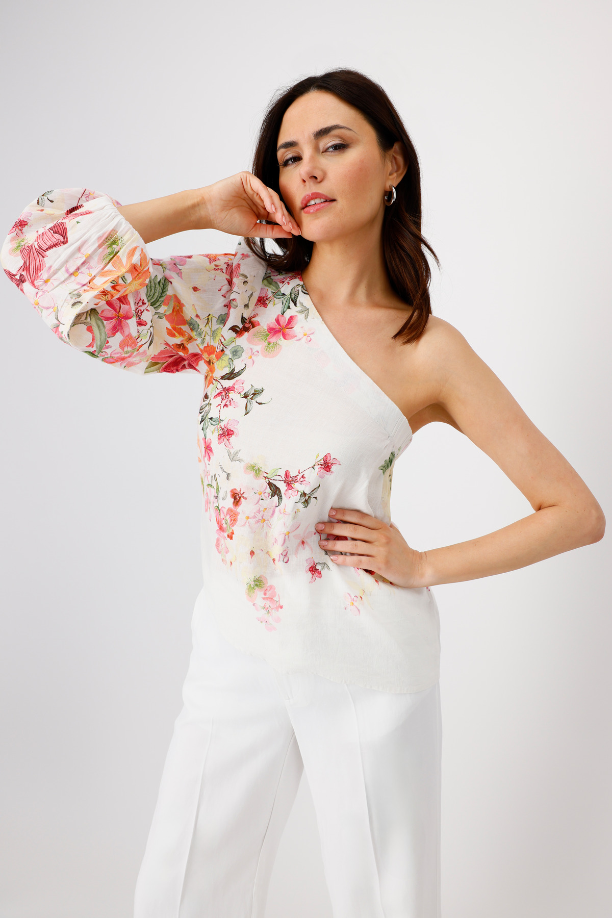 Táto priliehavá blúza s jedným ramenom vyrobená zo zmesi bavlny a ľanu