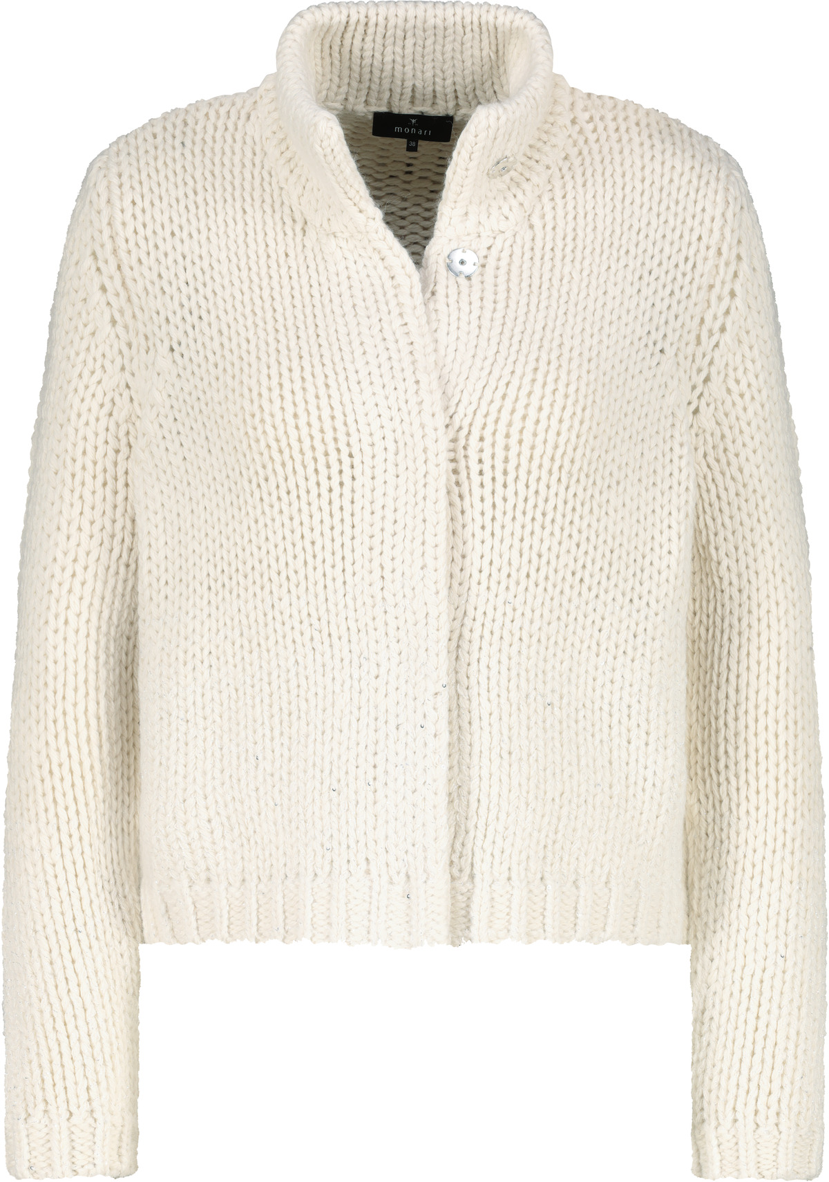 Zažite štýlovú eleganciu s touto bundičkou z hrubého úpletu vyrobenou z vysoko kvalitnej vlnenej zmesi, zdobenou lesklým lurexom a flitrami.