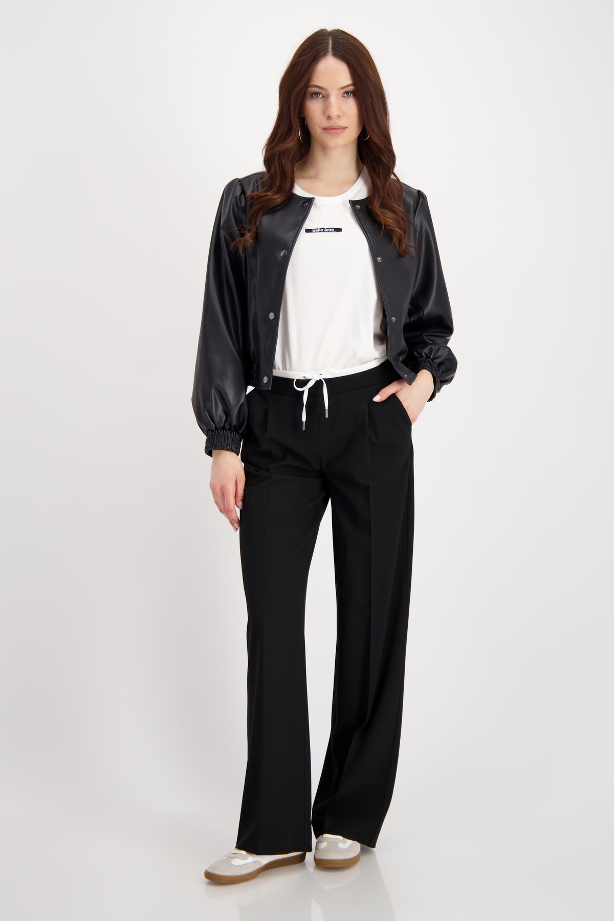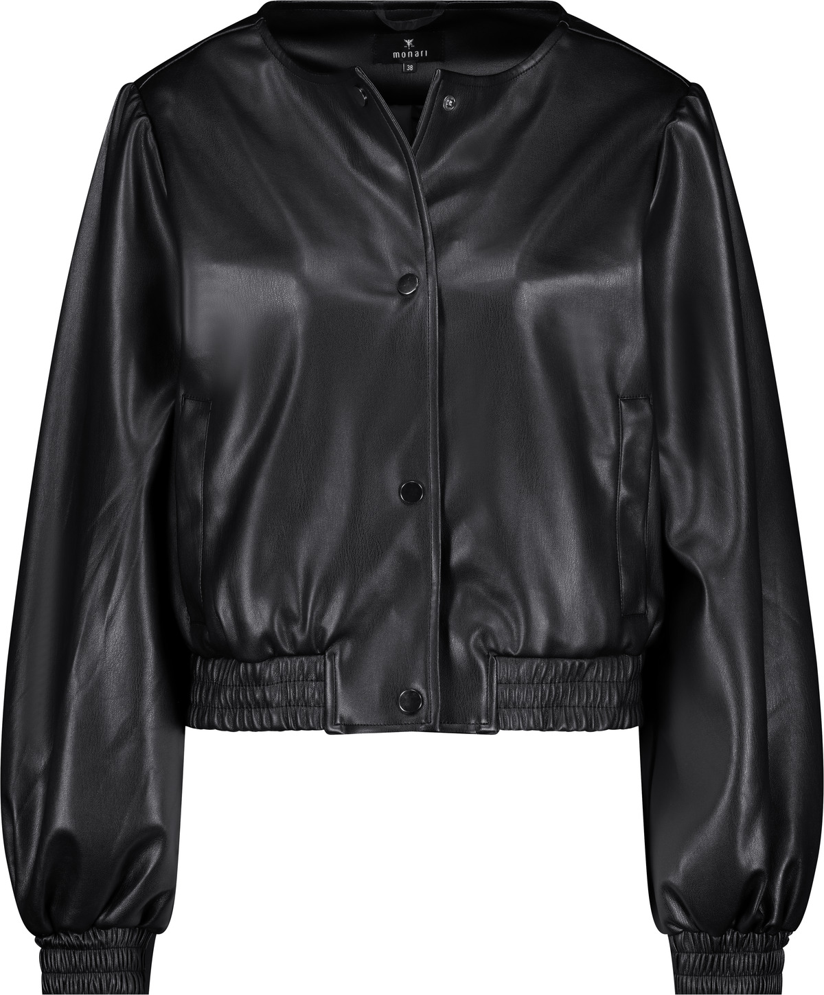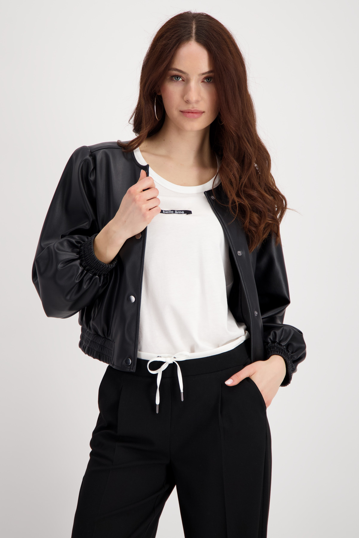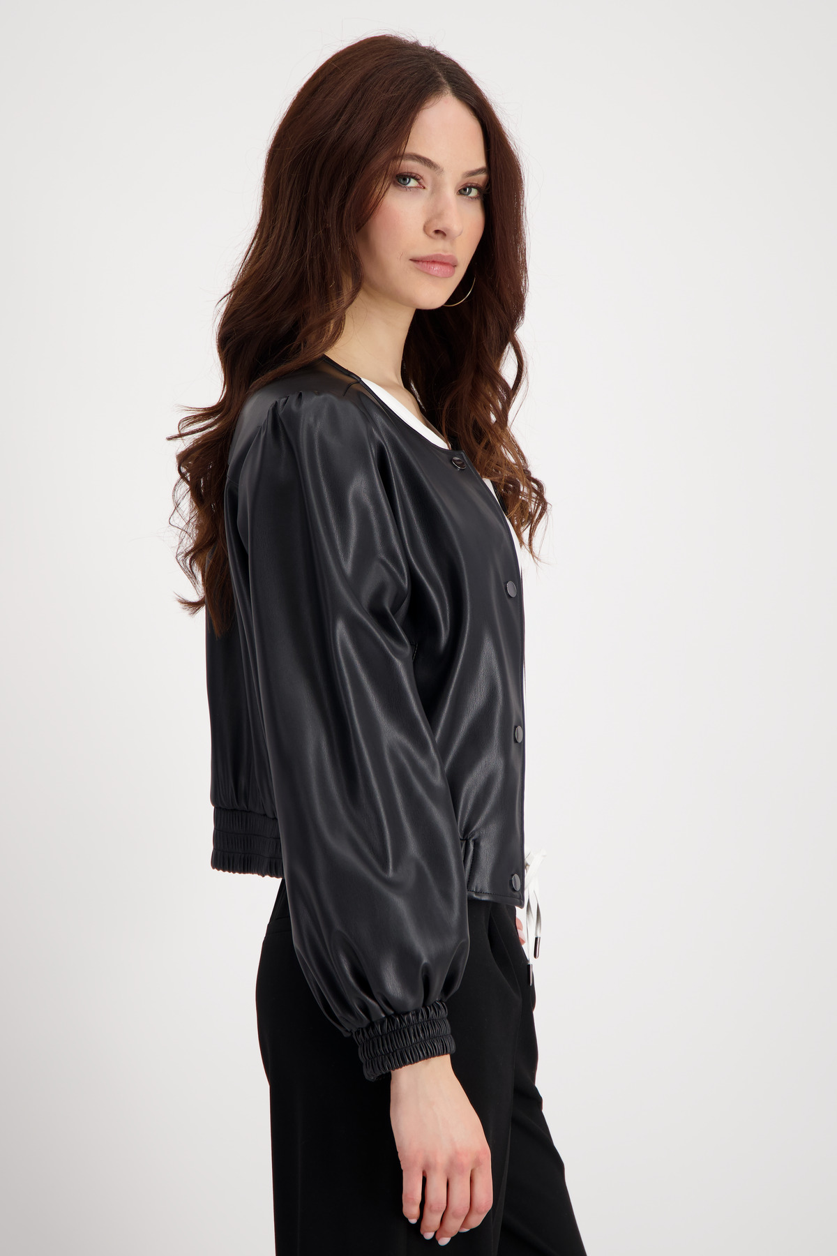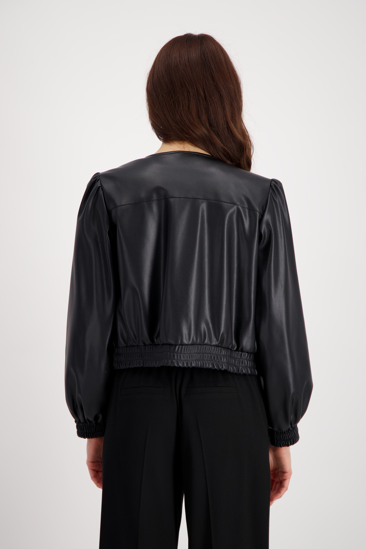 Štýlová halenka z imitácie kože v klasickom strihu s kulatým výstrihom a praktickými kapsami – ideálna pre sebavedomé módne nadšenky!