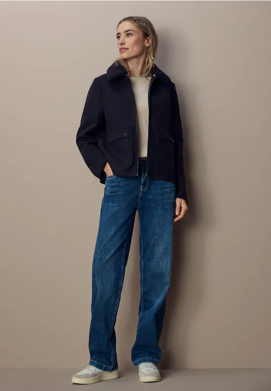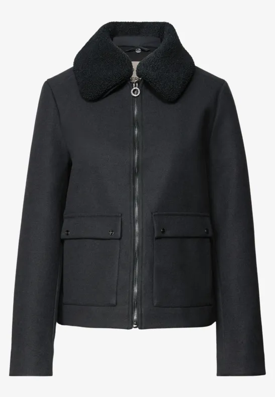 Táto krátka dámska bunda od Street One zaujme svojím moderným vlneným vzhľadom a milými detailmi.