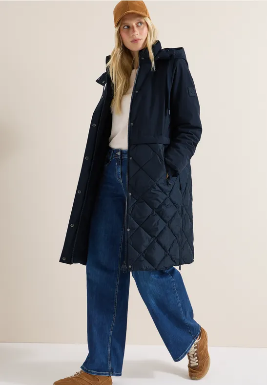 Športový a funkčný: Tento dámsky kabát od CECIL kombinuje hladké a prešívané časti, čím vytvára modernú textúrovanú zmes.