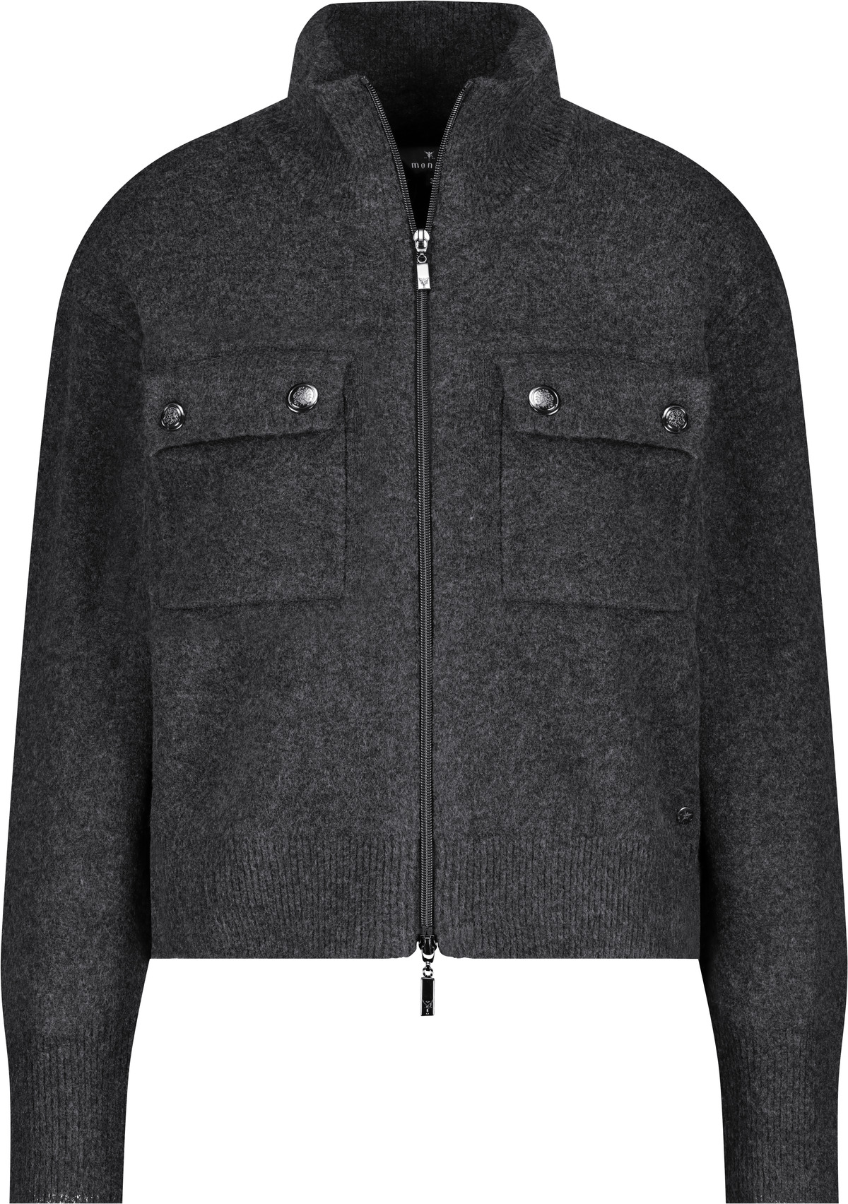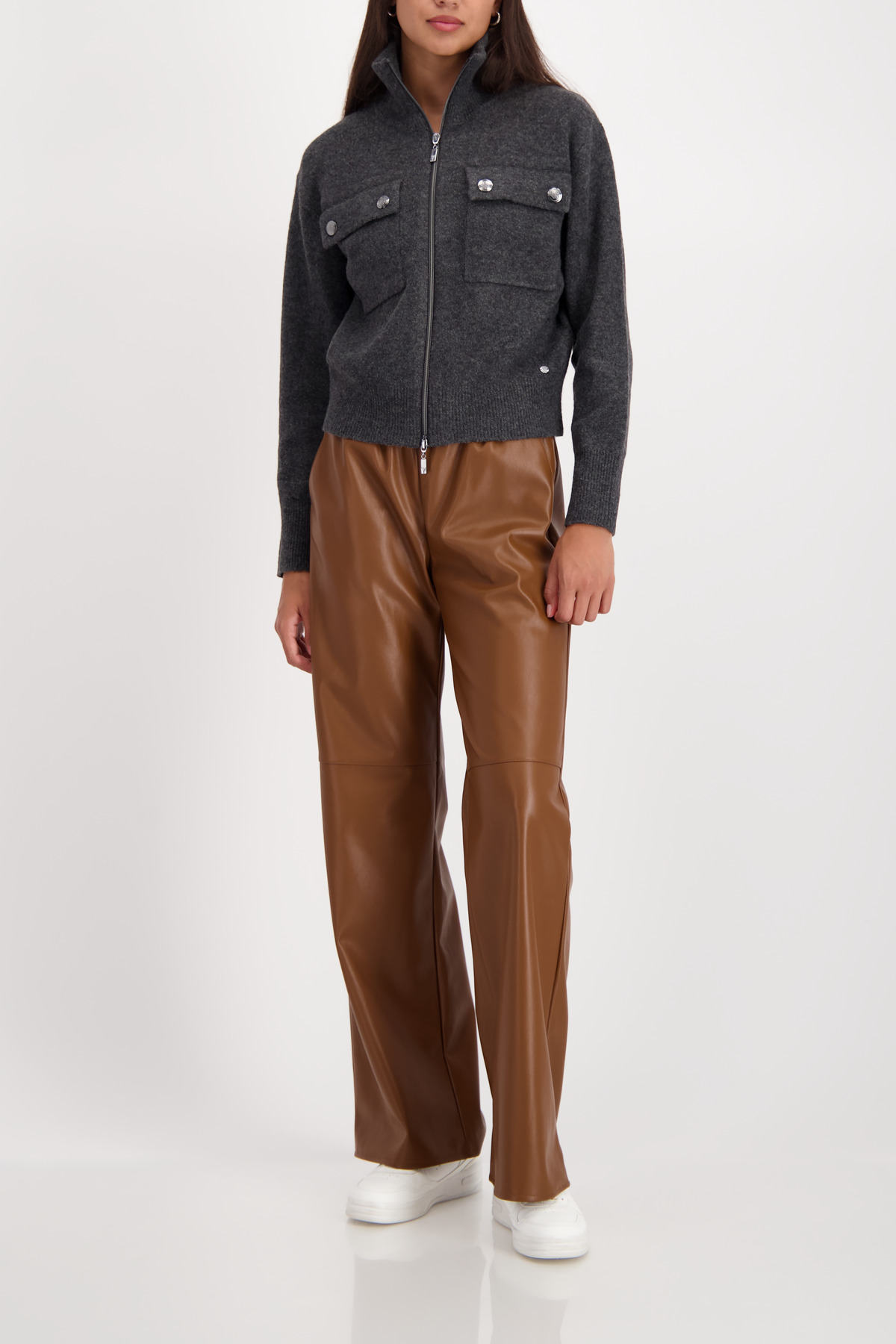 Tento kardigan má rebrovaný stojačik a praktický obojsmerný zips.