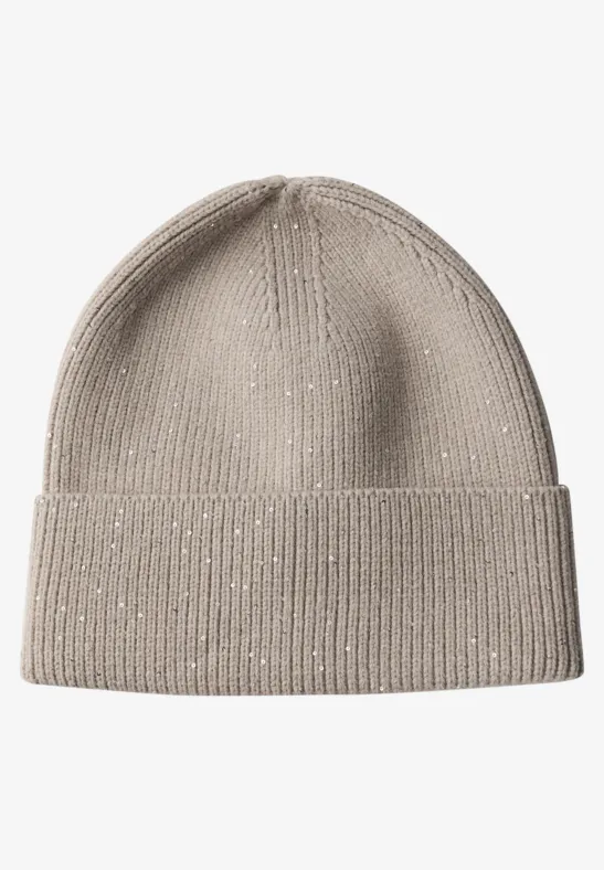 Táto dámska čiapka od Street One dodáva módny nádych vďaka jemnej rebrovanej textúre a trblietavým flitrovým detailom.
