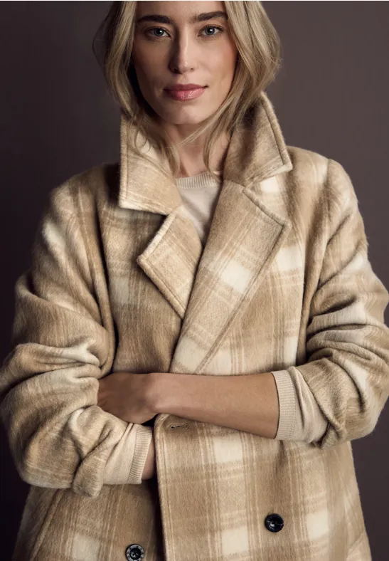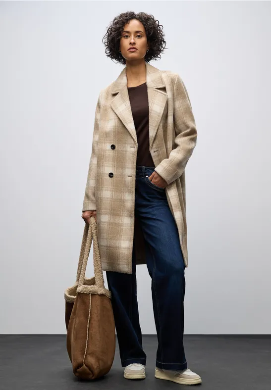 Tento kockovaný kabát od Street One pre ženy je skutočným pútačom pozornosti vďaka svojmu klasickému dizajnu.