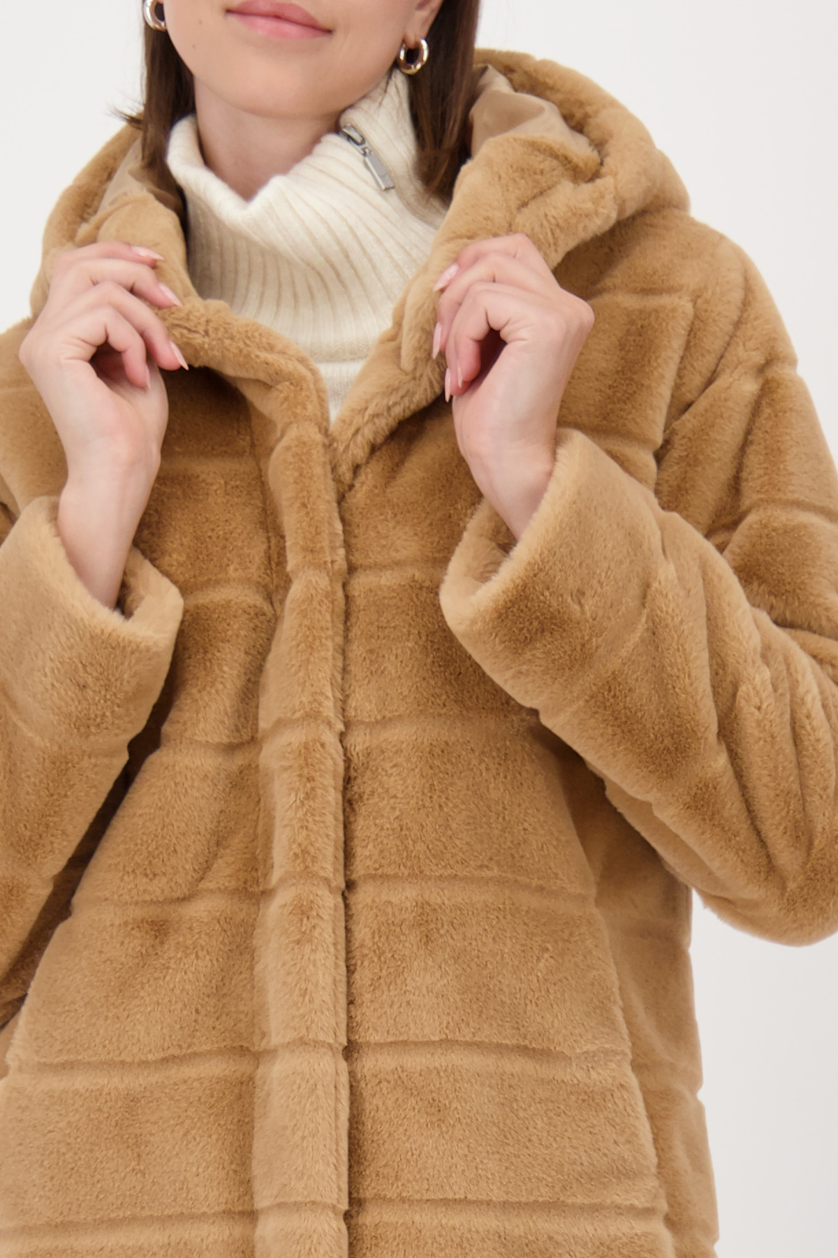 Štýlový kabát z umelej kožušiny s nadýchaným pocitom a praktickými vreckami. Módny kúsok pre každú príležitosť.