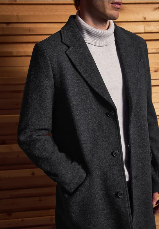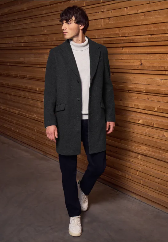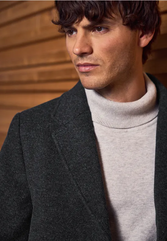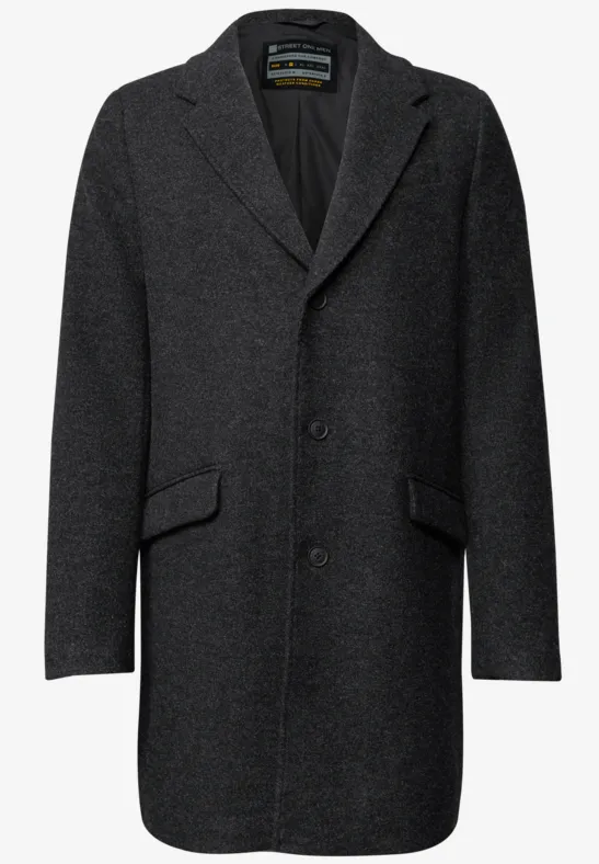 Tento kabát od Street One MEN zaujme svojím moderným vlneným vzhľadom a klasickým golierom s klopou. Zapínanie na gombíky, bočné vrecká a praktické vnútorné vrecko podčiarkujú nadčasový vzhľad. Pohodlná kvalita z neho robí štýlového spoločníka v chladných dňoch.