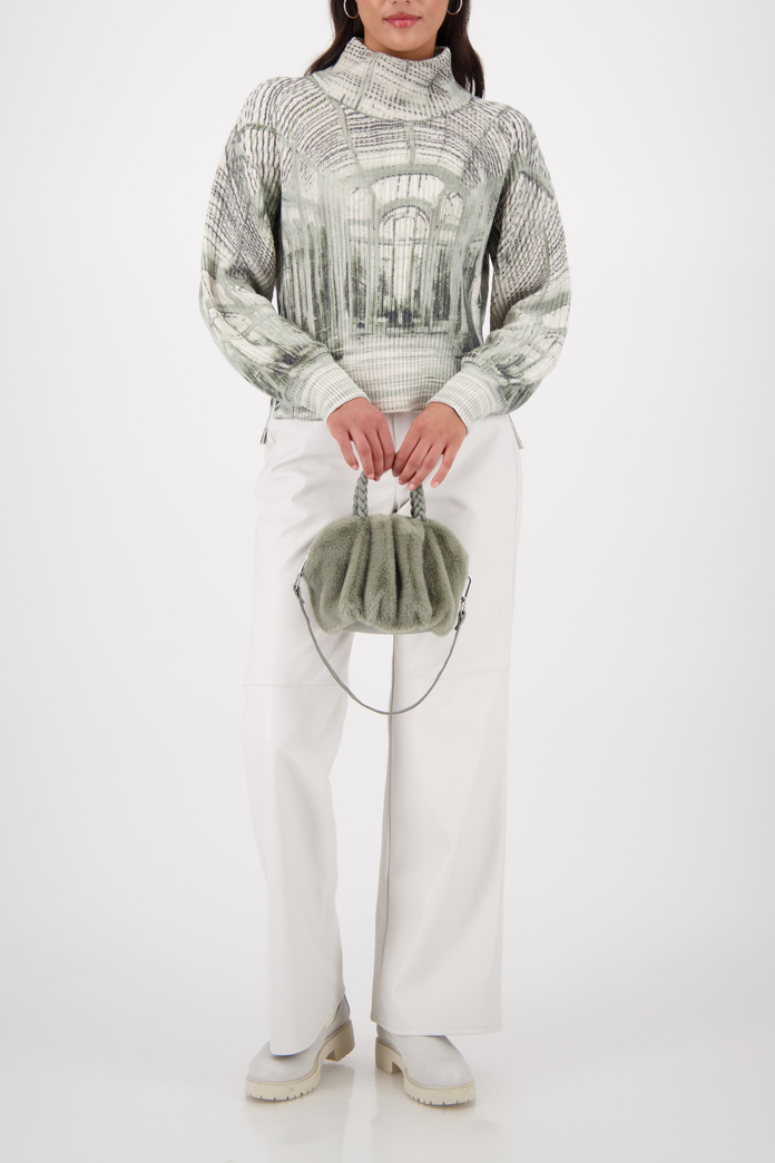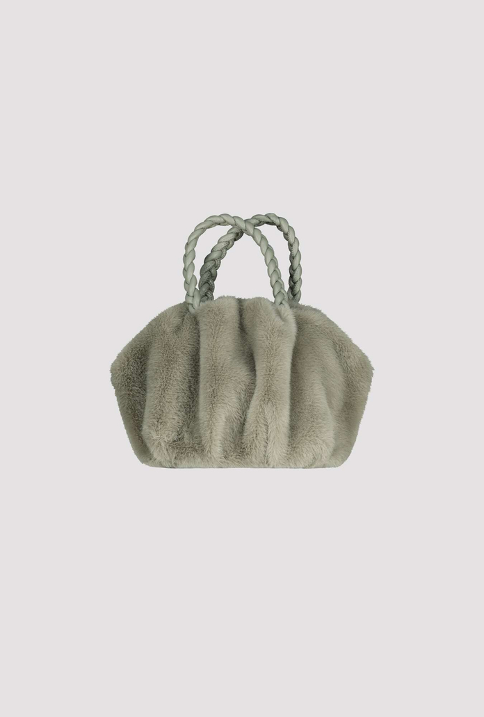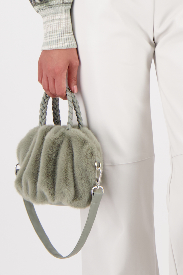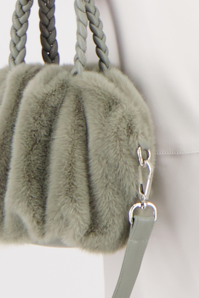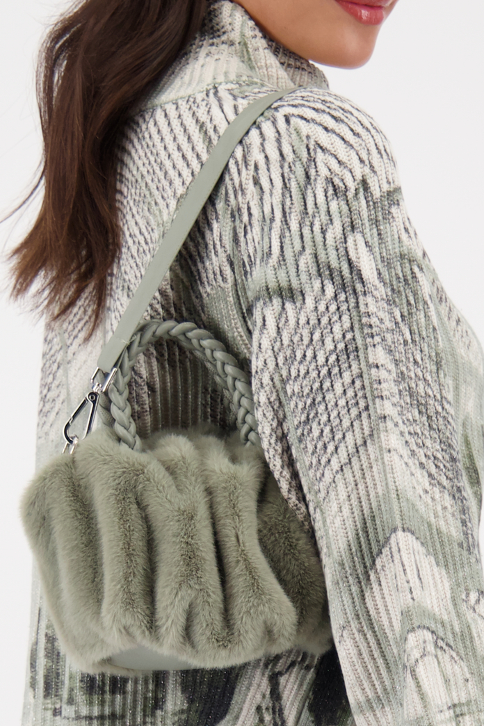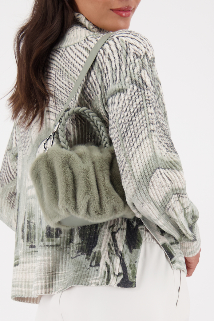 Elegantná taška z umelej kožušiny s pletenými rúčkami, zapínaním na patentný cvok a bočnými gombíkmi – štýlový spoločník.