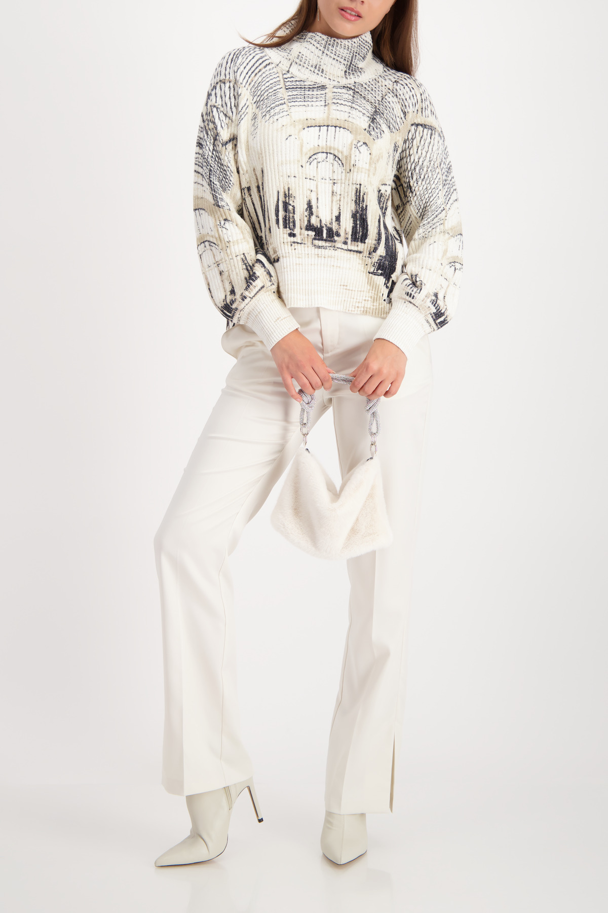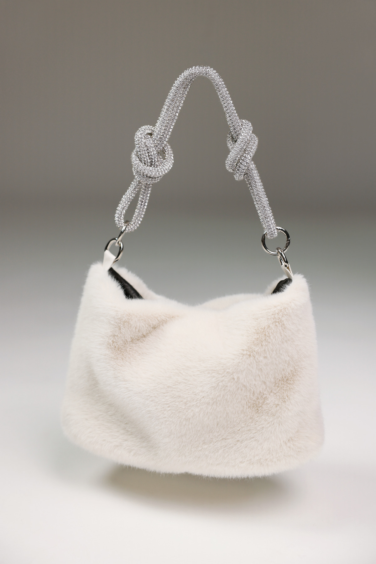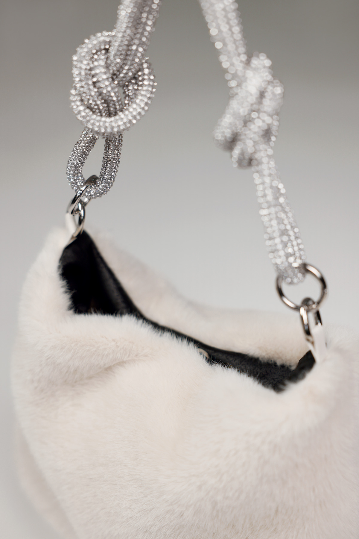 Elegantná taška z umelej kožušiny s nadýchaným pocitom, trblietavými kamienkami na rúčke a praktickým zapínaním na patentný patent – ​​štýlový must-have!