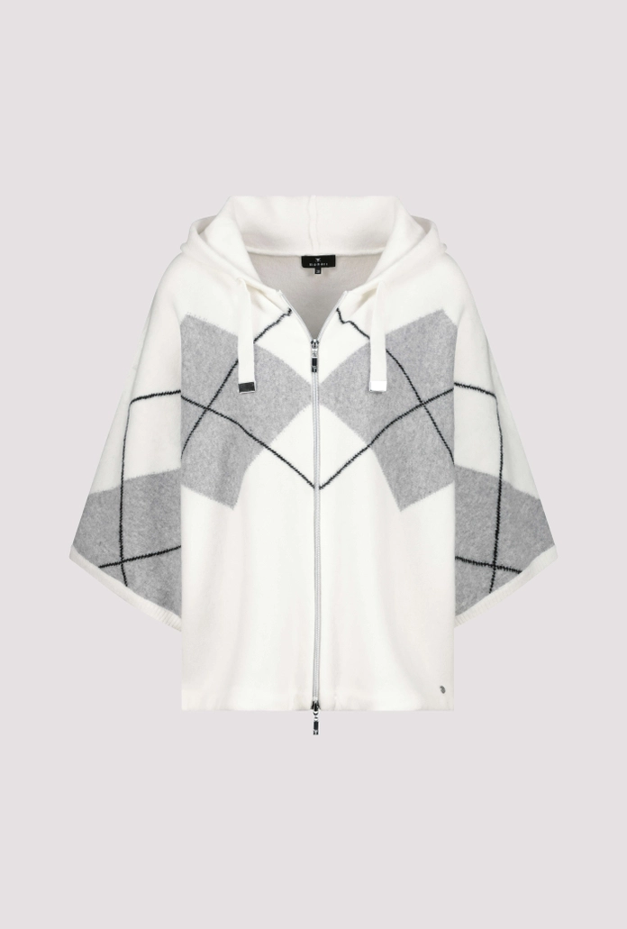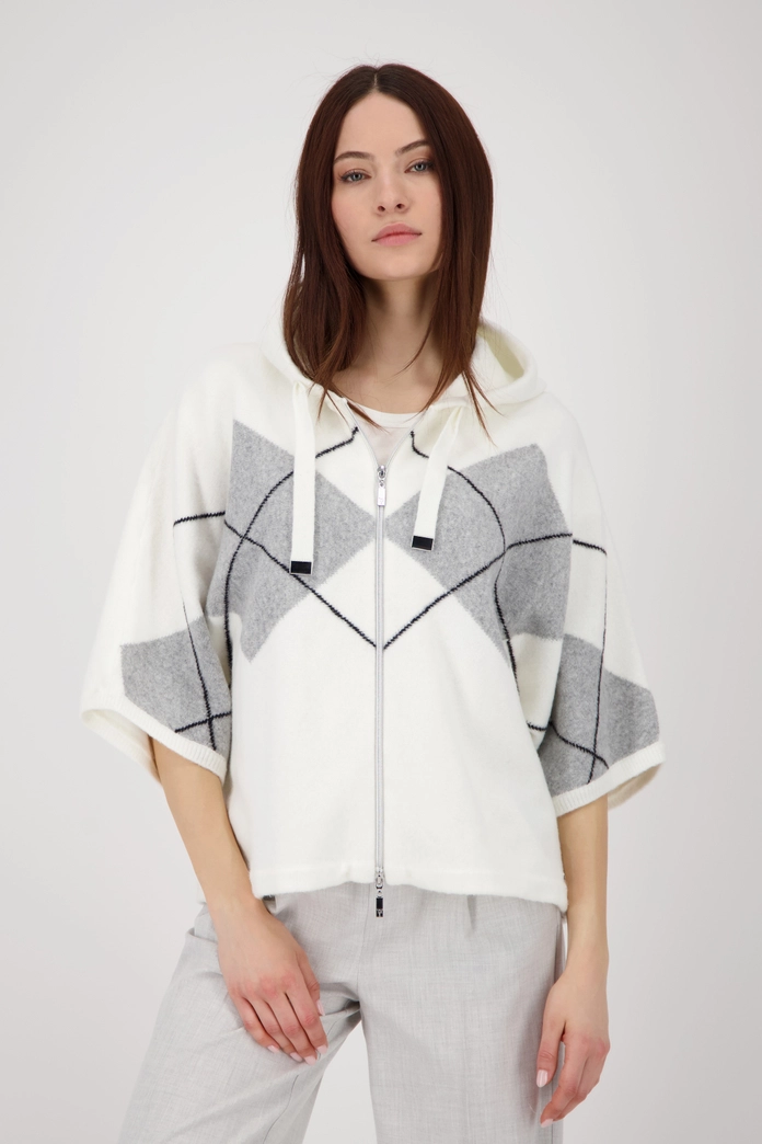 Kardigan s kockovaným vzorom, vyrobený z vysoko kvalitnej vlny a splývavej viskózy, nadýchaný, elastický, s kapucňou a ¾ rukávmi pre štýlové chvíle.