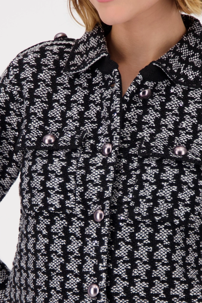 Elegantný kardigan z vysoko kvalitnej bavlnenej zmesi, zdobený vzorom pepity, flitrami a ozdobnými gombíkmi – moderný must-have!