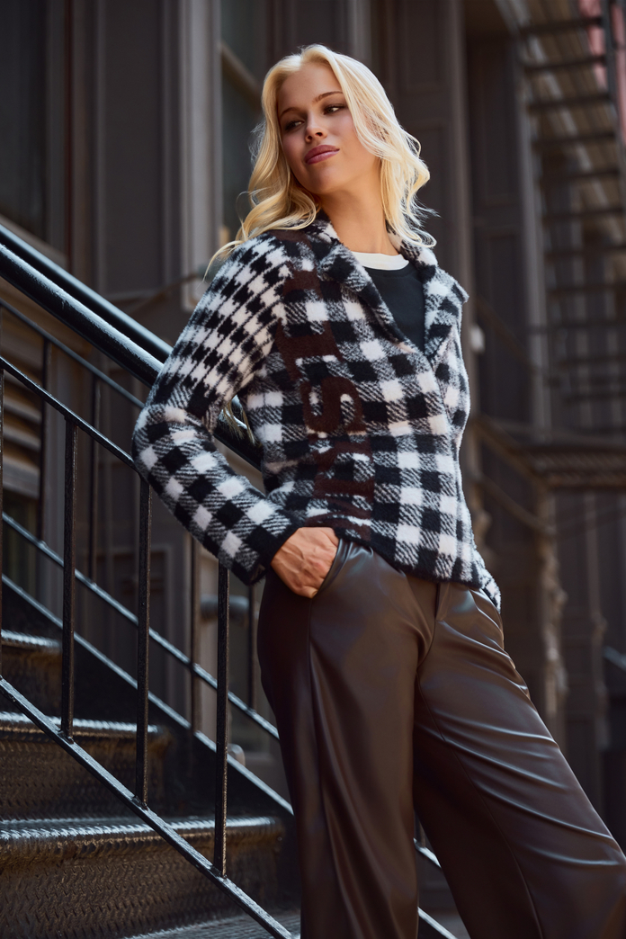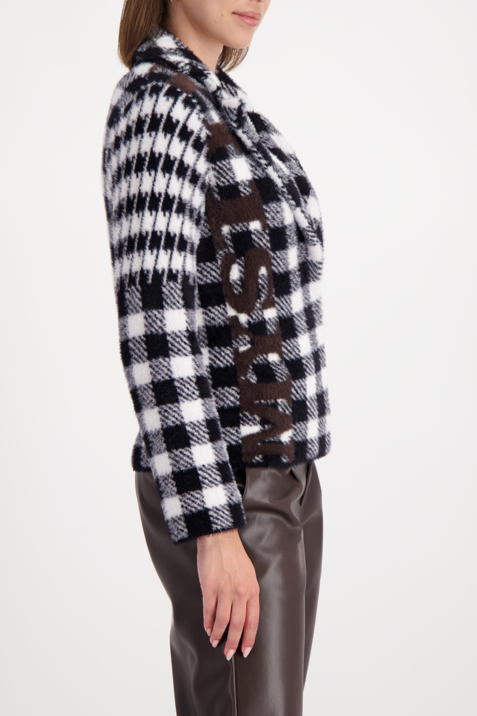 Nadýchaný kardigan so zmesou vzorov a logom „My Style“ – pre štýlový vzhľad.