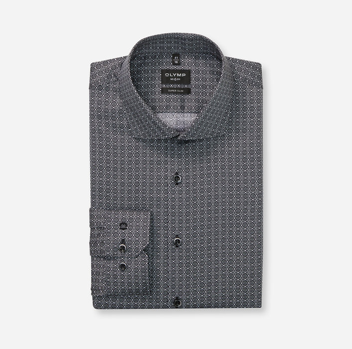 Elegantný vzhľad v super slim strihu: Táto košeľa OLYMP No. Six, navrhnutá v priliehavom, silne prispôsobenom strihu, je určená pre športovejšiu, štíhlejšiu klientelu. Elegantný bavlnený satén sa vyznačuje štýlovým minimalistickým dizajnom, tu v čiernej farbe. Z pohodlnej, ľahko udržiavateľnej a žehliacej sa tkaniny Comfort Stretch. Doplnená golierom Royal Kent.