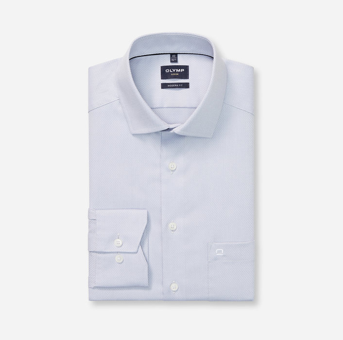 Materiál košieľ OLYMP Men's Club zaujme svojou elegantnou textúrou a prepracovanosťou, a to ako na vzhľad, tak aj na dotyk. Jemné priadze zo 100-percentnej bavlny vďaka svojim špeciálnym vlastnostiam zabezpečujú prirodzenú elasticitu a pohodlie šetrné k pokožke. Kozmopolitný golier Global Kent sebavedomo dopĺňa priliehavý štýl.