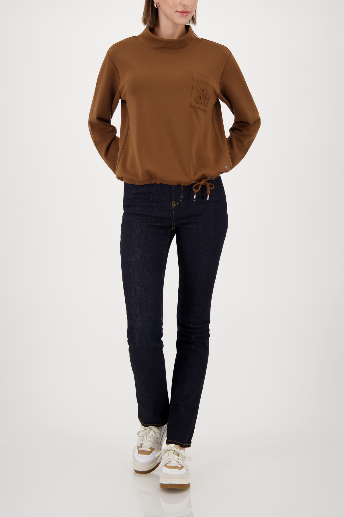 Táto jedinečná mikina zaujme pútavou 3D potlačou na náprsnom vrecku a elegantnou ozdobou na stojačiku.