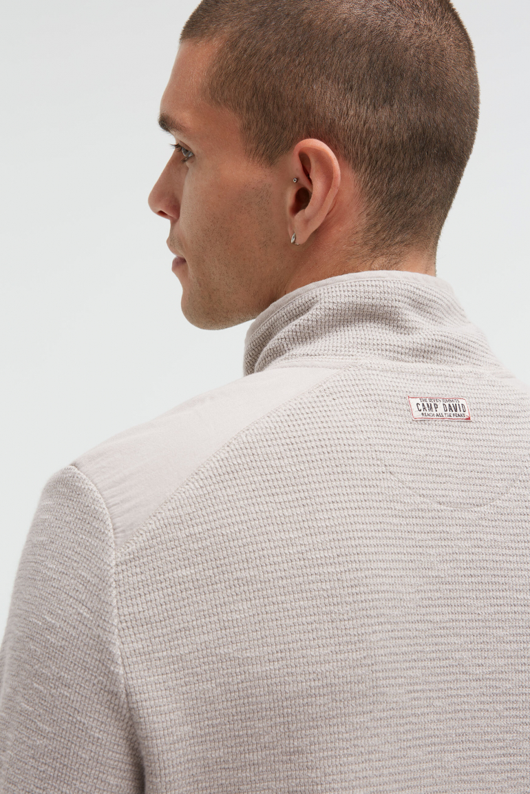 Štruktúrovaná Troyer mikina od CAMP DAVID vytvára elegantný dobrodružný vzhľad. Tónové keprové detaily zdôrazňujú golier Troyer so zipsom, ramená a predné klopové vrecká na gombík. Vyšívané logo je umiestnené nad náprsným vreckom. Poznámka: Mikina je väčšia.