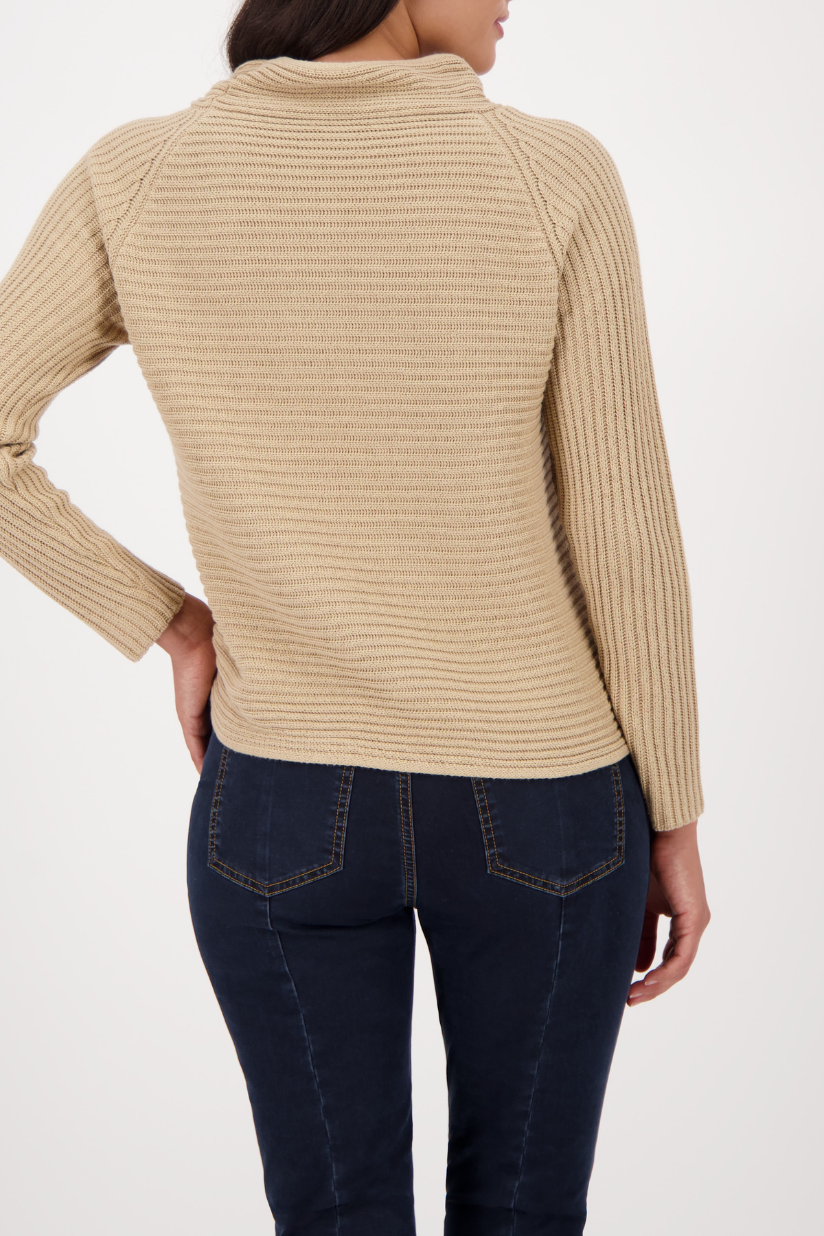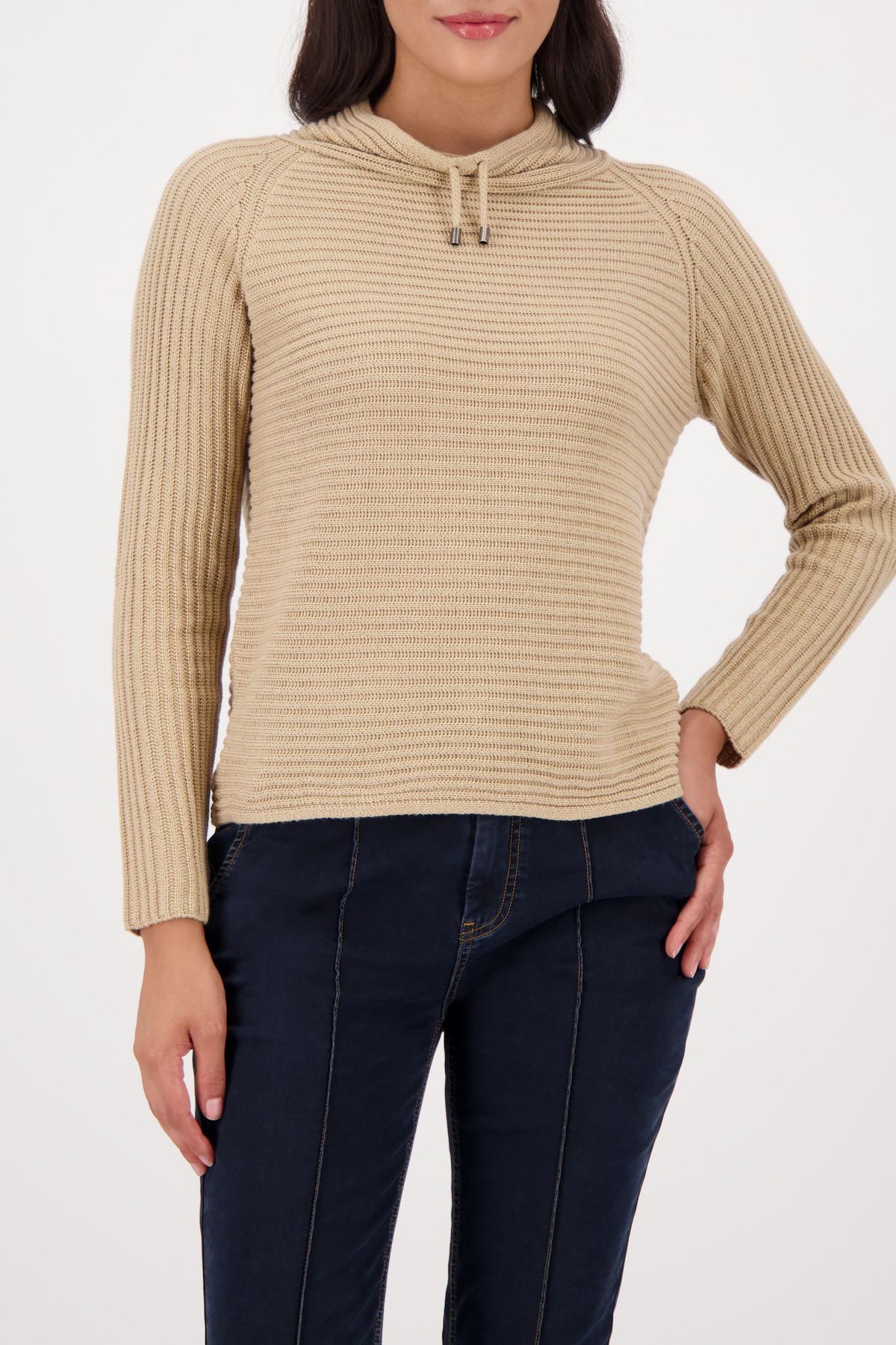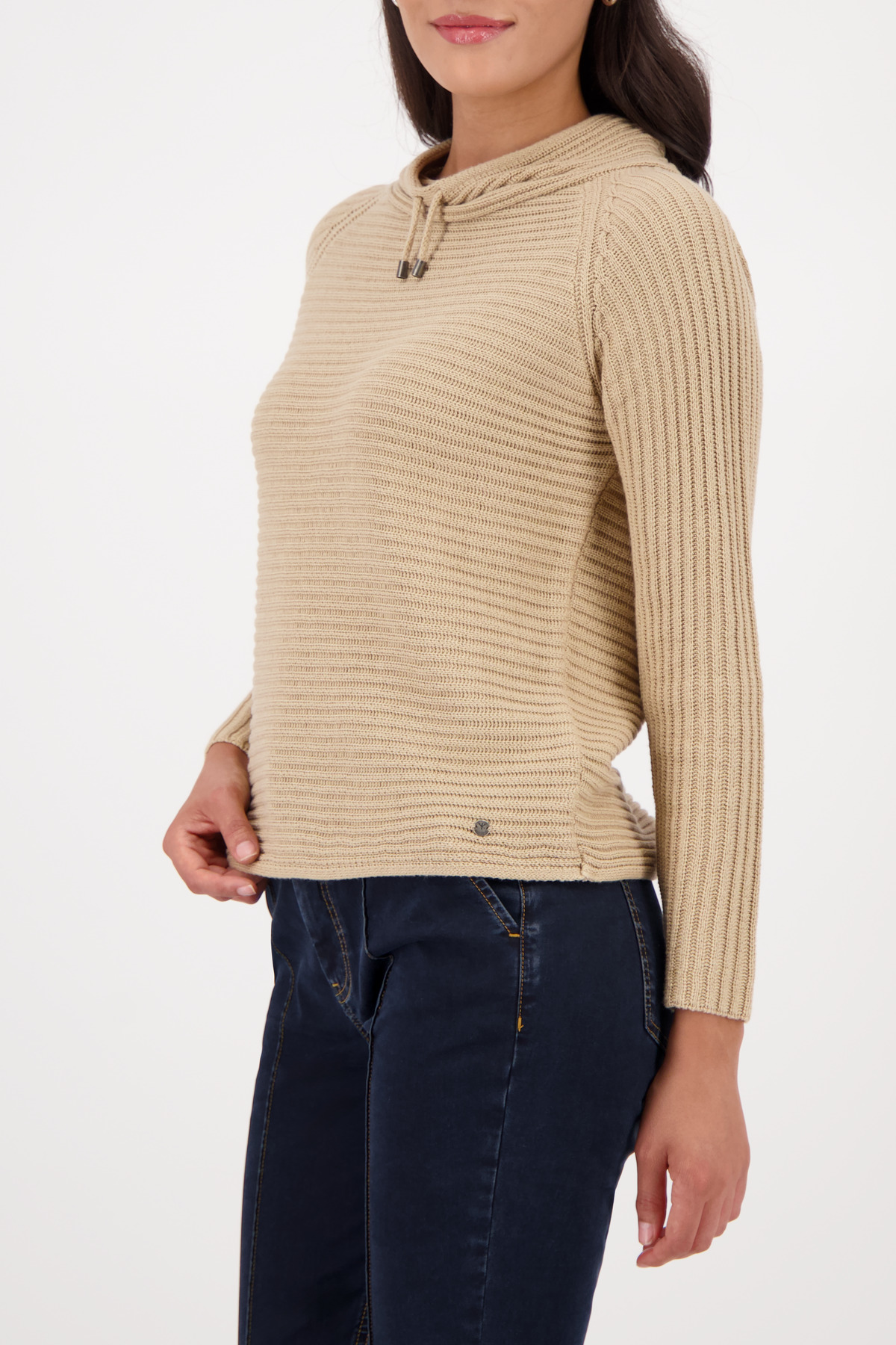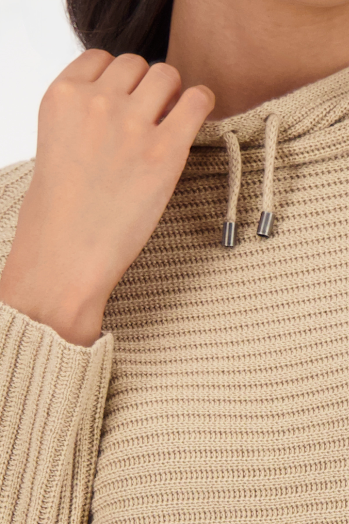 Tento pôsobivo štýlový sveter vyrobený zo sofistikovanej zmesi bavlny má rebrovanie, pravidelný strih a elegantný stojatý golier so sťahovacou šnúrkou
