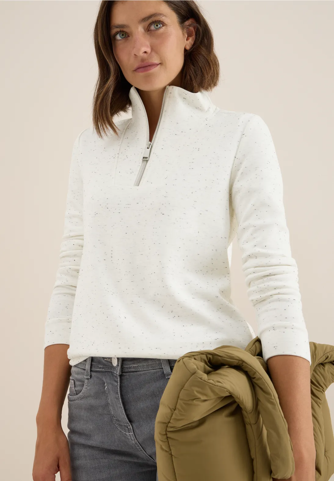 Táto štruktúrovaná dámska košeľa od CECIL kombinuje jemný vzor so športovým rolákovým golierom.