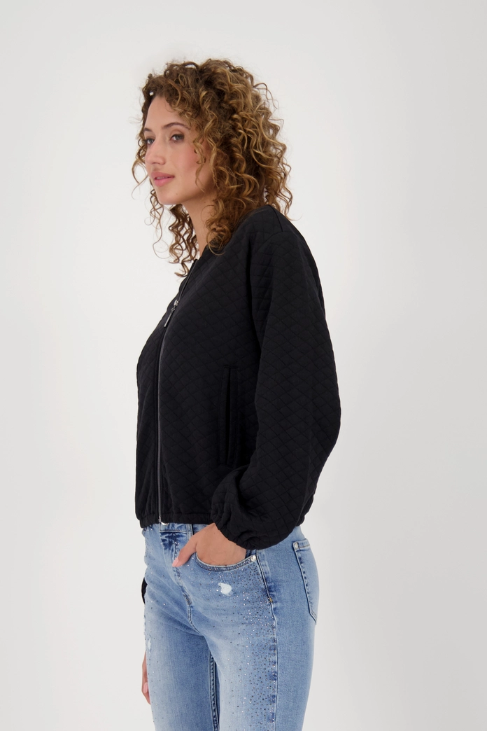 Moderná prešívaná bunda z padavej viskózy s elastickým materiálom, okrúhlym výstrihom a praktickými vreckami pre štýlový vzhľad.