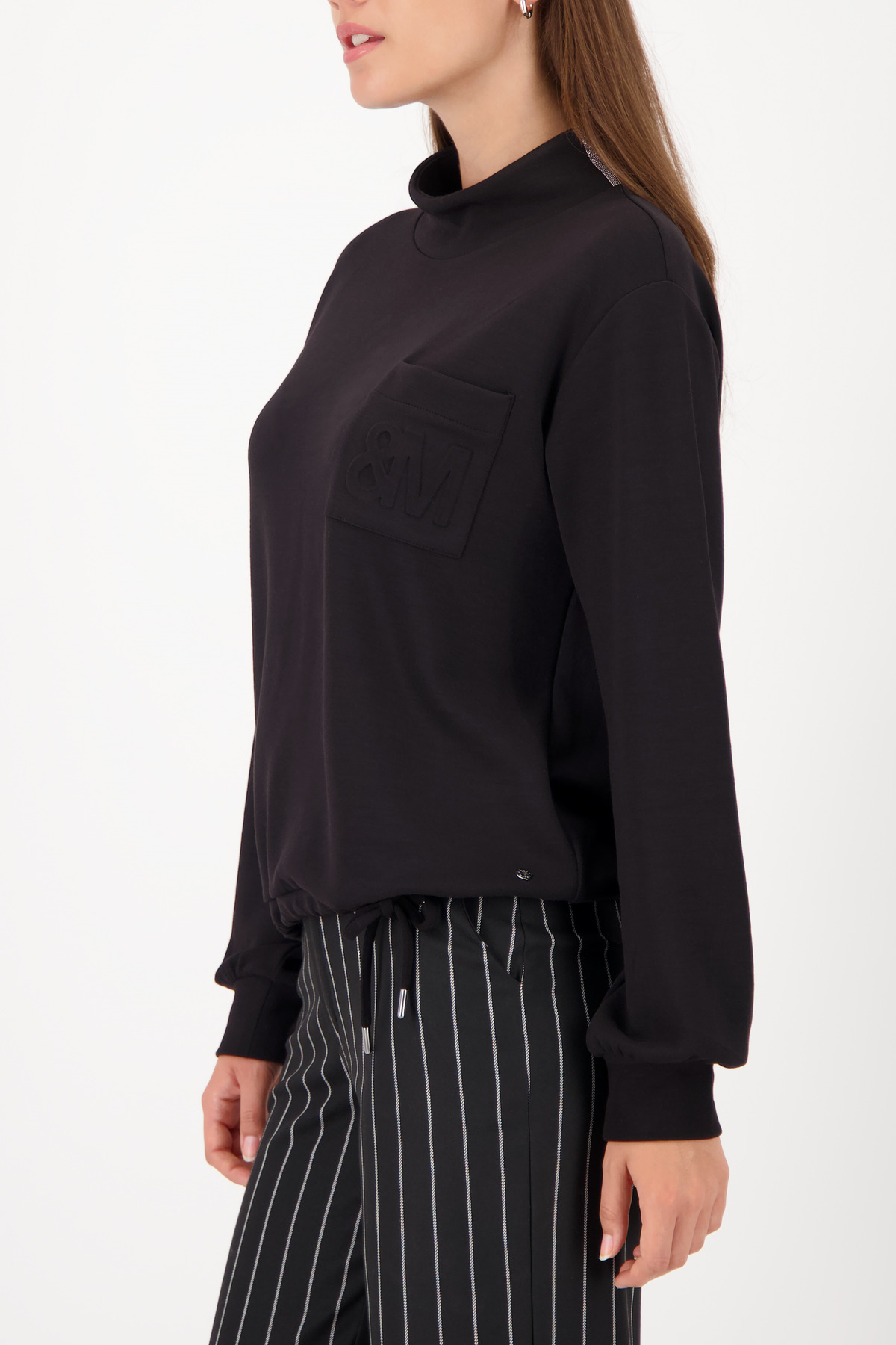 Táto jedinečná mikina zaujme pútavou 3D potlačou na náprsnom vrecku a elegantnou ozdobou na stojačiku.