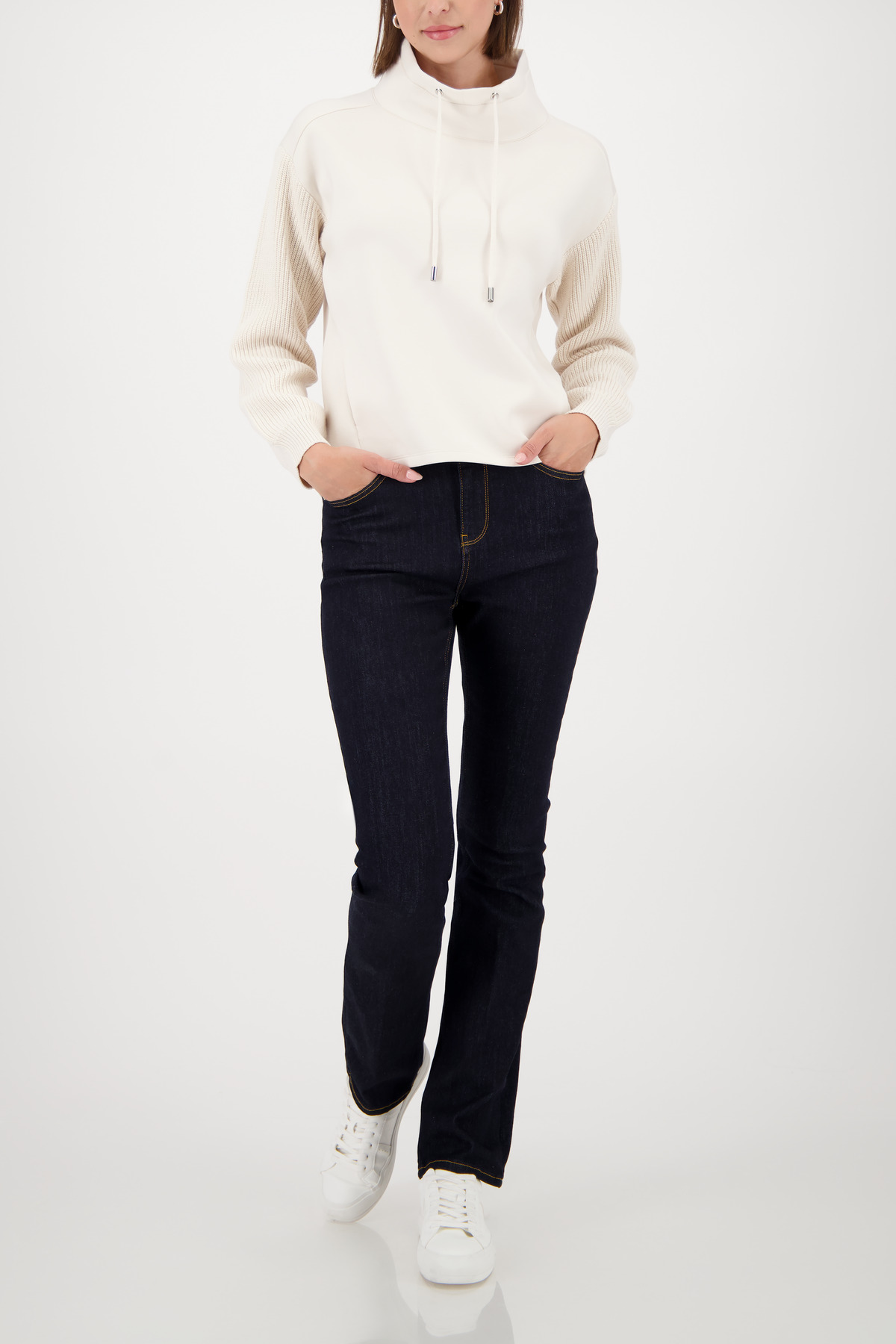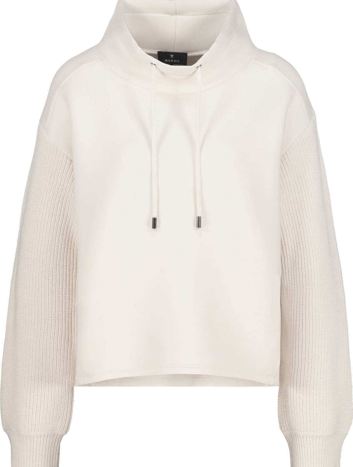Táto štýlová mikina vyrobená zo splývavej viskózy kombinuje elastický materiál s elegantnými pletenými rukávmi.