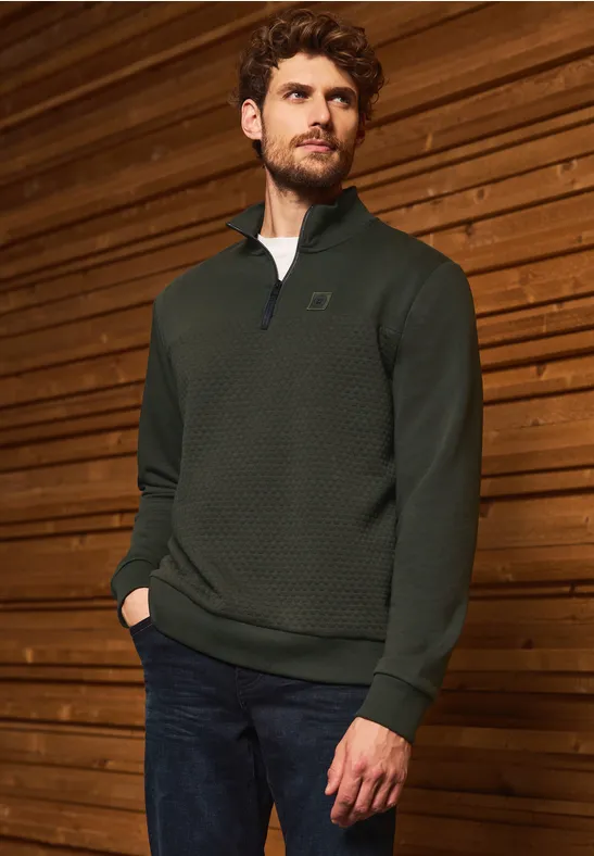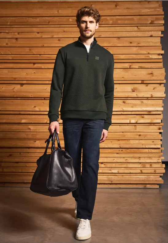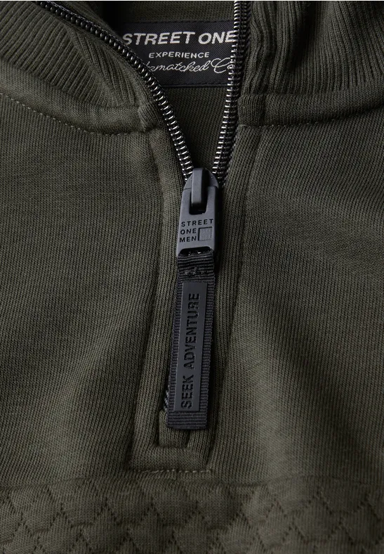 Táto mikina Street One MEN kombinuje mužský štýl so športovou ležérnosťou. Charakteristický rolák, výrazný textúrovaný vzor a pohodlný strih z neho robia dokonalého doplnku k ležérnym outfitom. Ideálny na prechodné ročné obdobia a voľný čas.