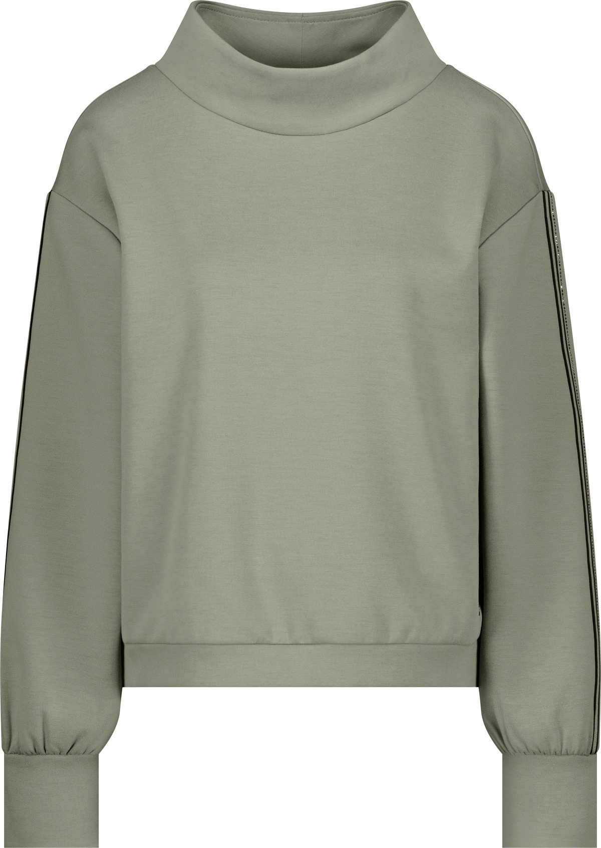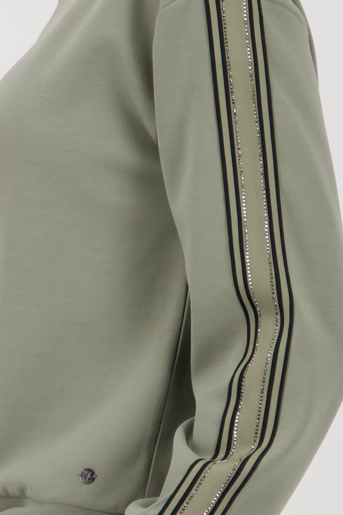 Štýlová mikina zo splývavej viskózy s pruhmi na rukáve a očarujúcimi kamienkami.