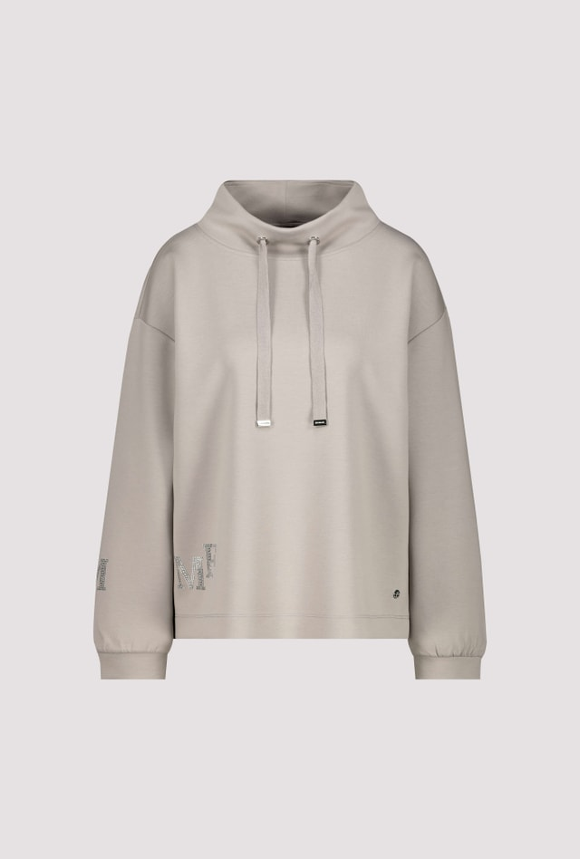 Spustené ramená a trblietavé kamienky – vrátane loga na prednej strane a písmena „M“ na rukáve – vytvárajú módne akcenty so špeciálnym šarmom.