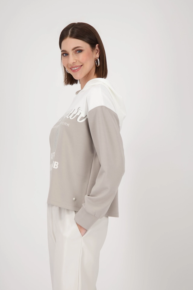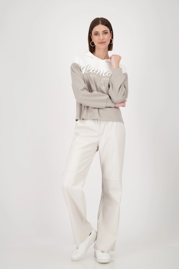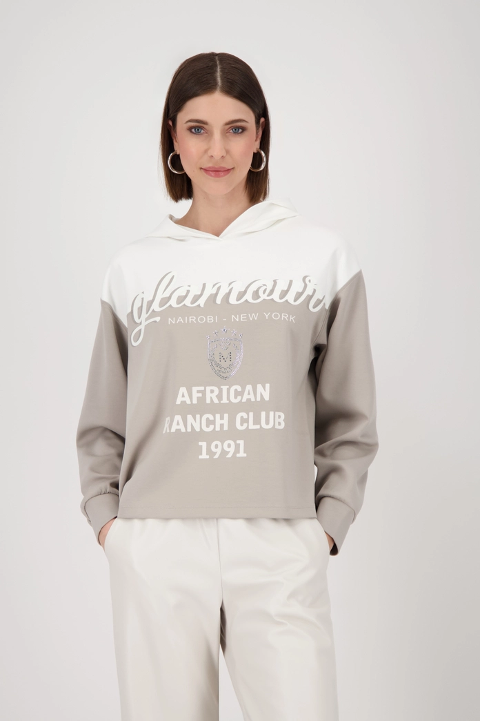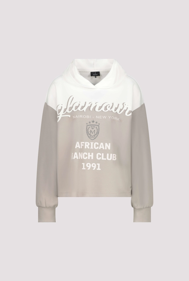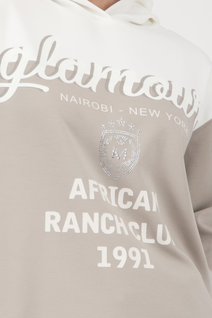 Táto mikina vyrobená z padavej viskózy s elastickým materiálom je zdobená trblietavými kamienkami a nápisom „Glamour“.