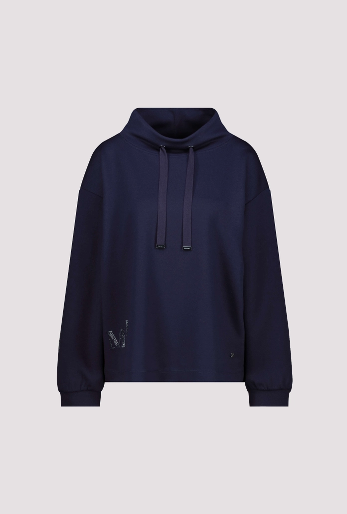 Spustené ramená a trblietavé kamienky – vrátane loga na prednej strane a písmena „M“ na rukáve – vytvárajú módne akcenty so špeciálnym šarmom.