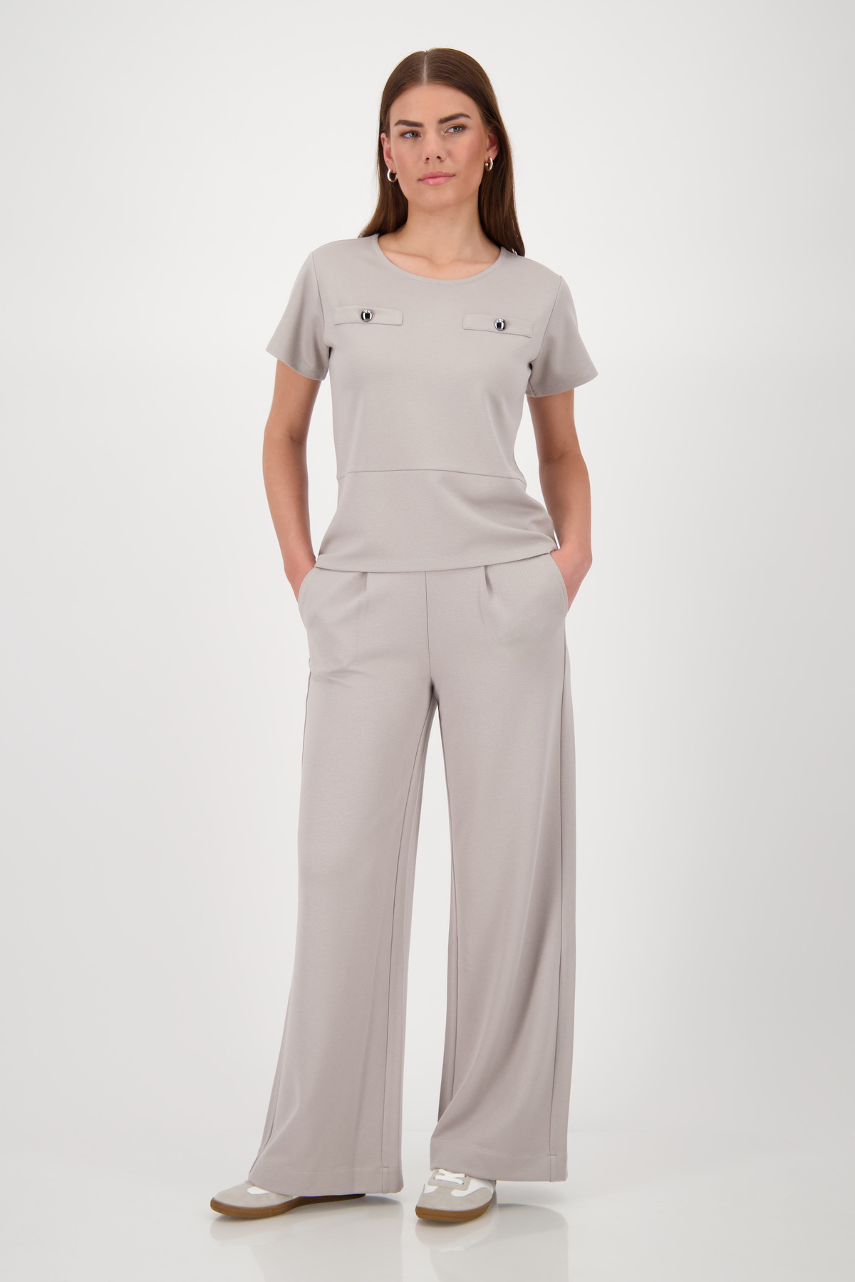 Široký strih nohavíc a jemný záhyb vytvárajú modernú a štýlovú siluetu.