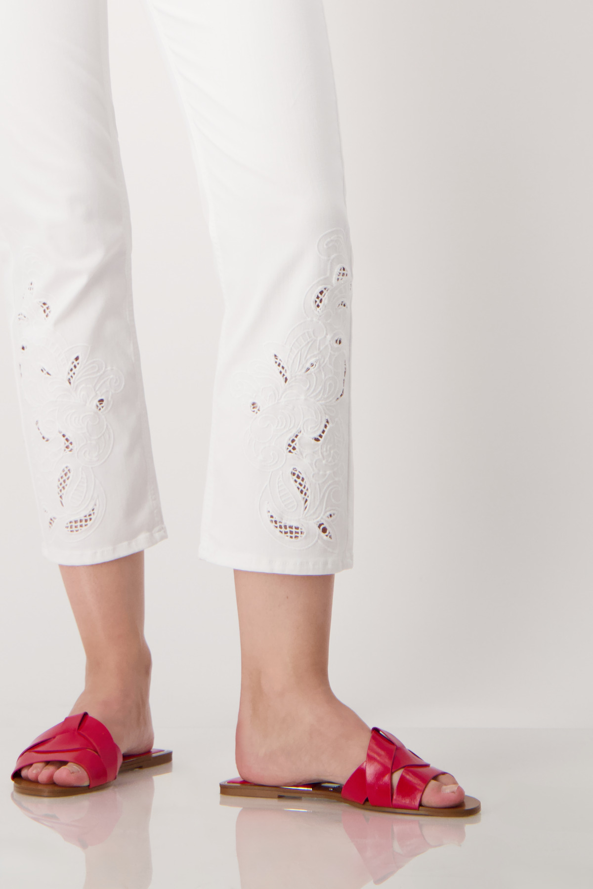 Tieto nohavice s perfoovanou čipkou kombinujú kvalitnú bavlnu s elastickým materiálom