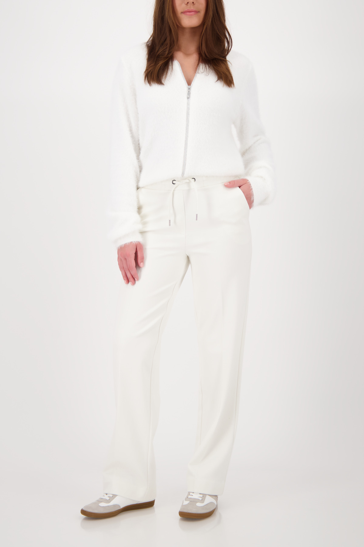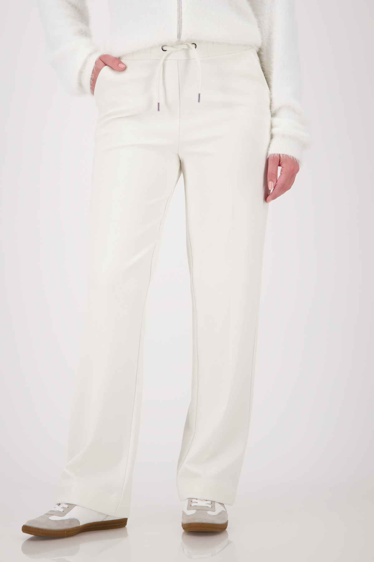 Pružná látka a elastický pás so zaväzovaním zaisťujú pohodlné nosenie, zatiaľ čo klasický záhyb dodáva rovnému strihu štýlový nádych – ideálne pre uvoľnený vzhľad s uhladeným vzhľadom.