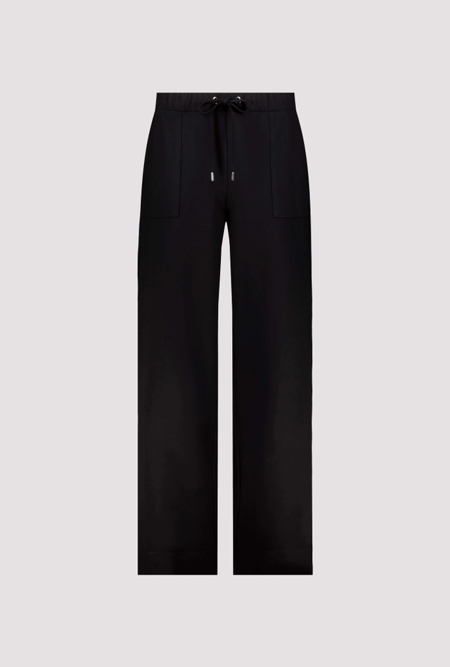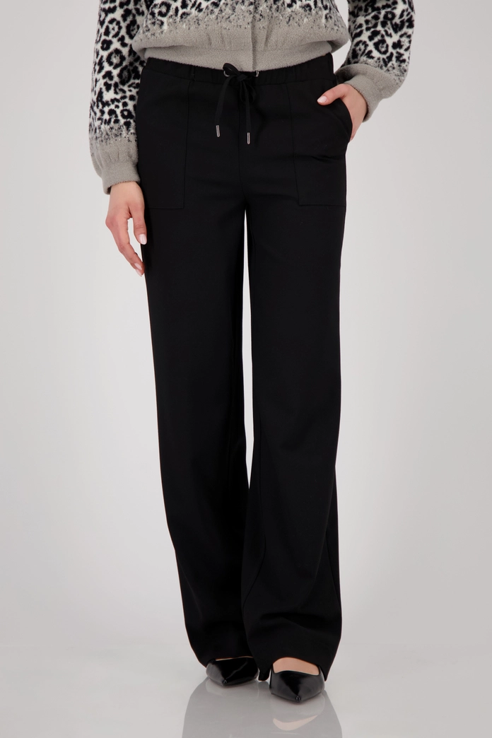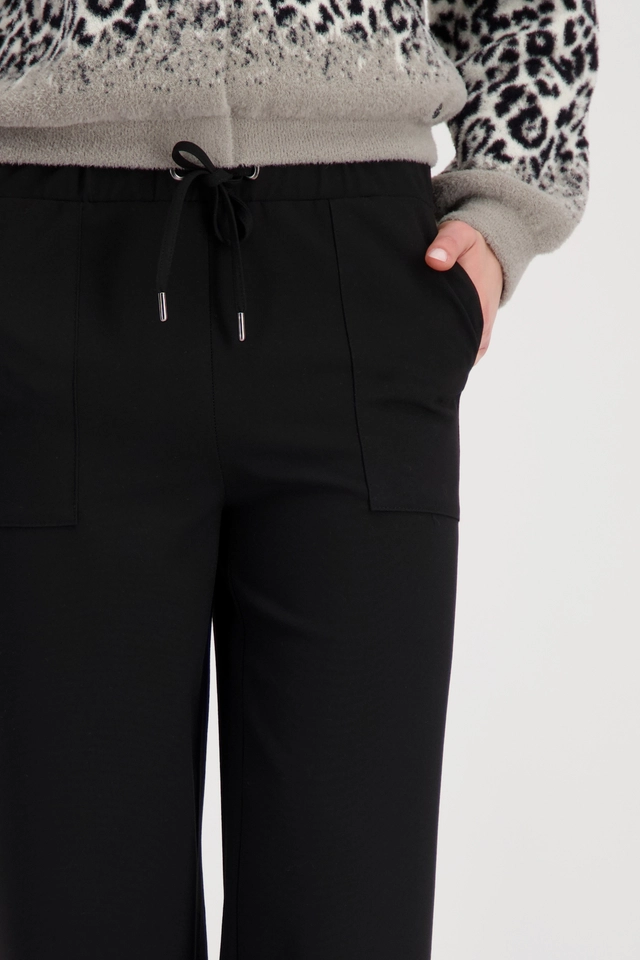Elastické nohavice so širokými nohavicami a veľkými našitými vreckami, ktoré kombinujú ležérny štýl s pohodlím pre uvoľnený vzhľad