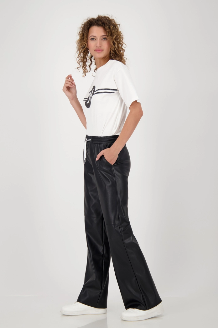 Objavte štýlové bermudy z umelej kože s elastickým pásom, sťahovacou šnúrkou, bočnými vreckami a klopovými vreckami – moderné a všestranné.