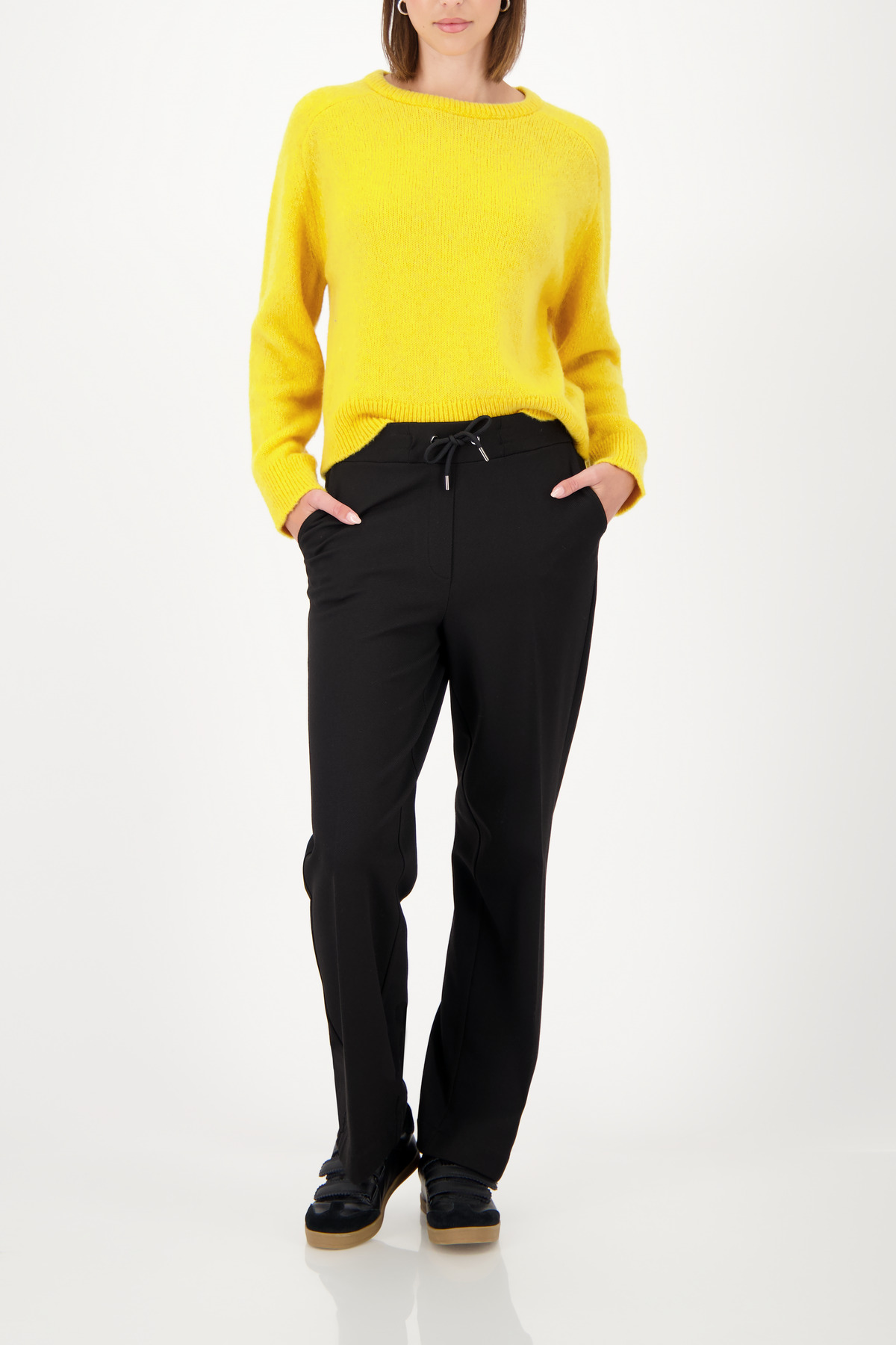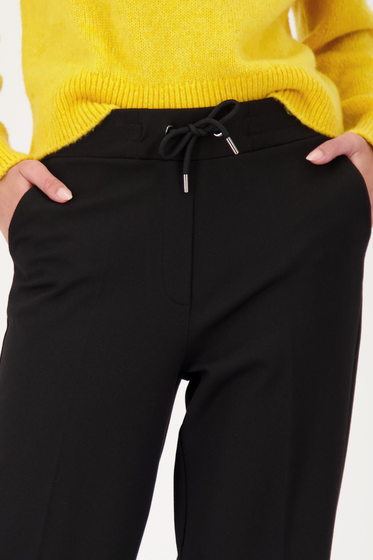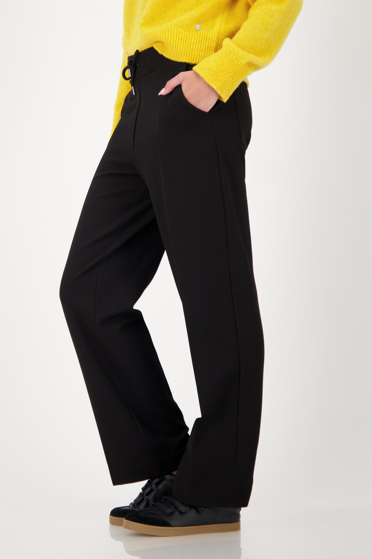 Modelka meria 1,80 m a má na sebe veľkosť 34. Vnútorná dĺžka nohavíc je 78 cm pre všetky veľkosti.