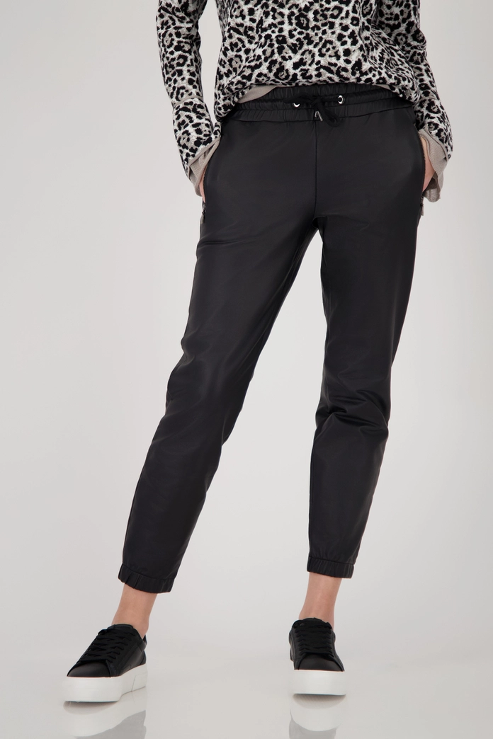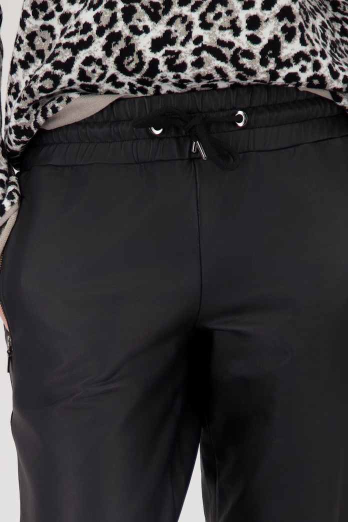 Tieto nohavice sú vyrobené z vysoko kvalitnej bavlnenej zmesi a majú elastický materiál s koženým vzhľadom, elastický pás so sťahovacou šnúrkou a praktické bočné vrecká na zips.