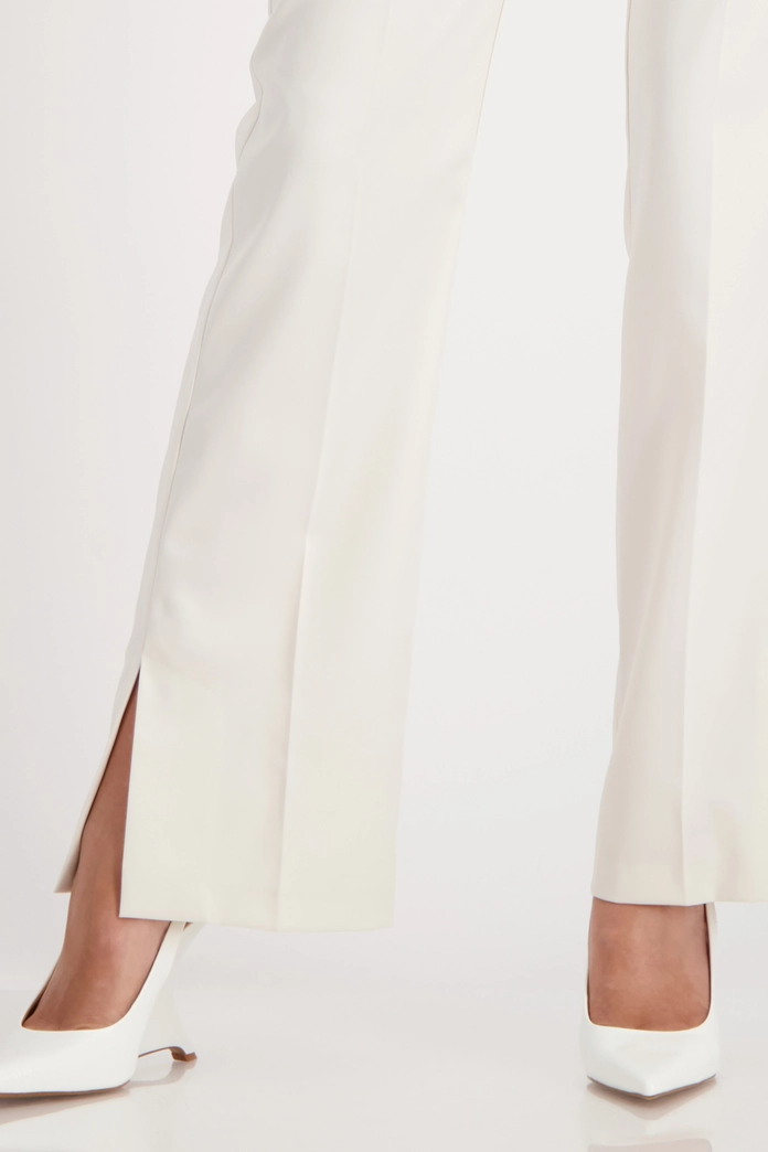 Elegantné nohavice s krátkym strihom v saténovom vzhľade s ozdobnými záhybmi, bočnými rozparkami a praktickými vreckami, ideálne pre ženy, ktoré dbajú na štýl.