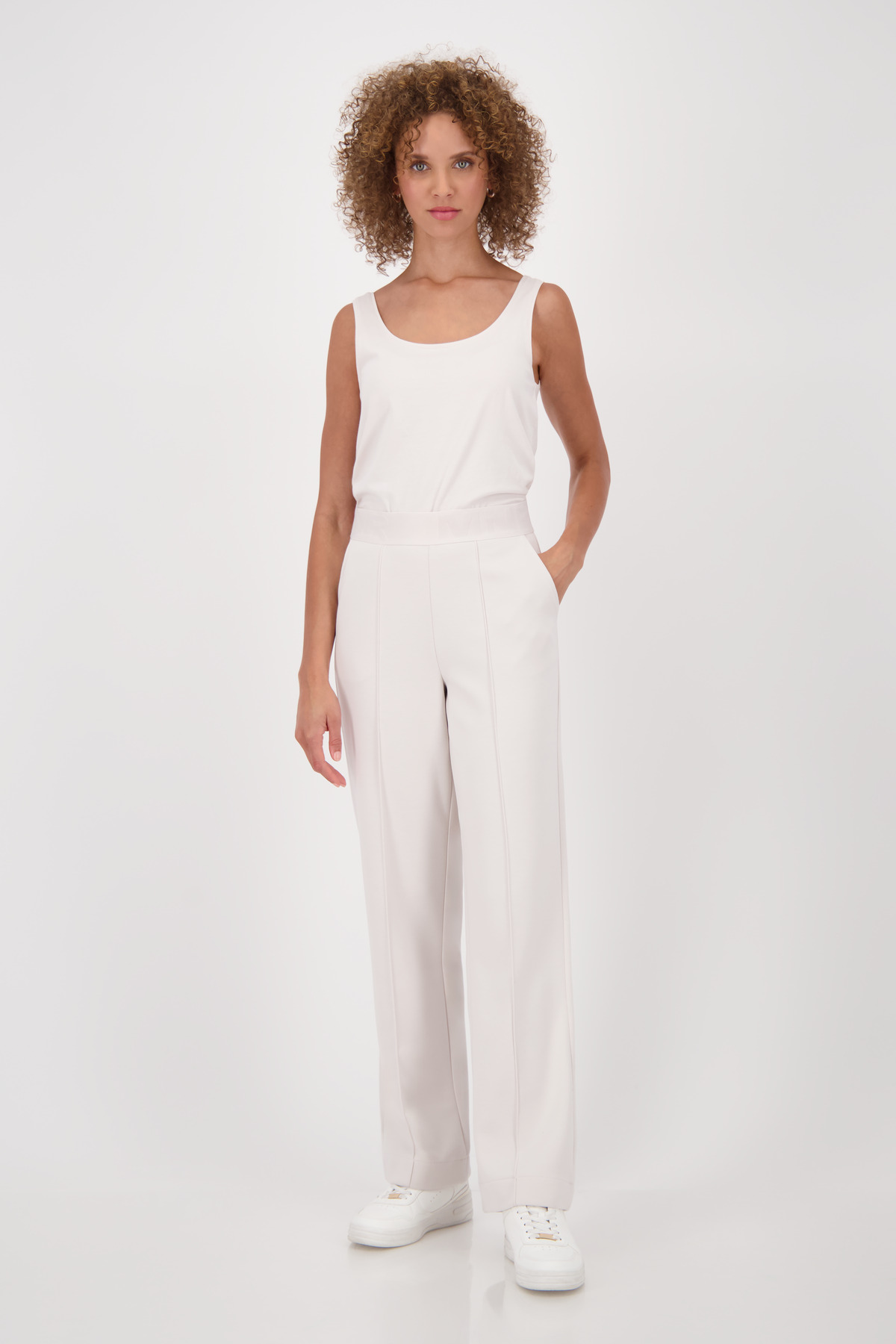 Rovný strih je umocnený jemným záhybom, zatiaľ čo bočné vrecká a imitácia zadných vreciek dodávajú praktické a štýlové detaily.
