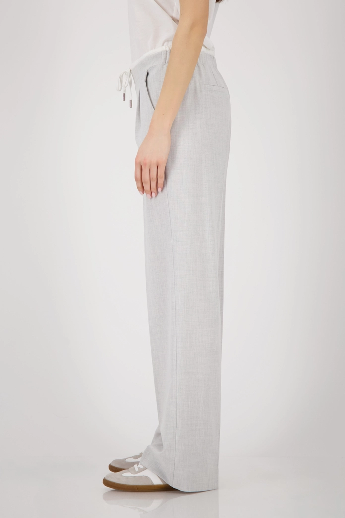 Elegantné nohavice zo splývavej viskózy s elastickým materiálom, kontrastným pásom a praktickými vreckami – moderná voľba pre štýlových trendsetterov.