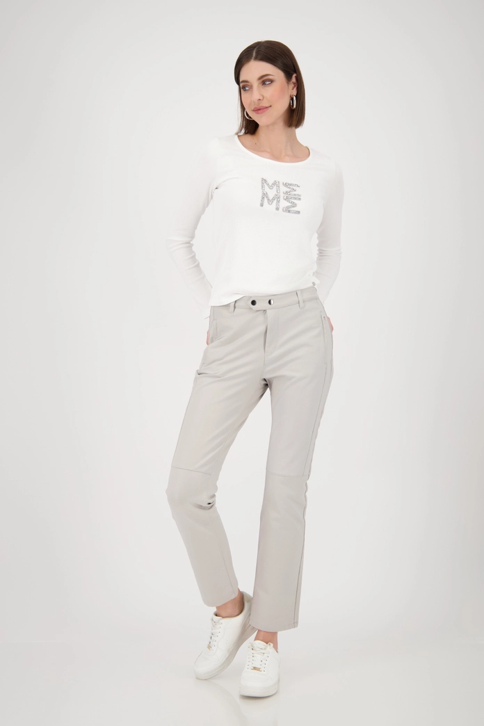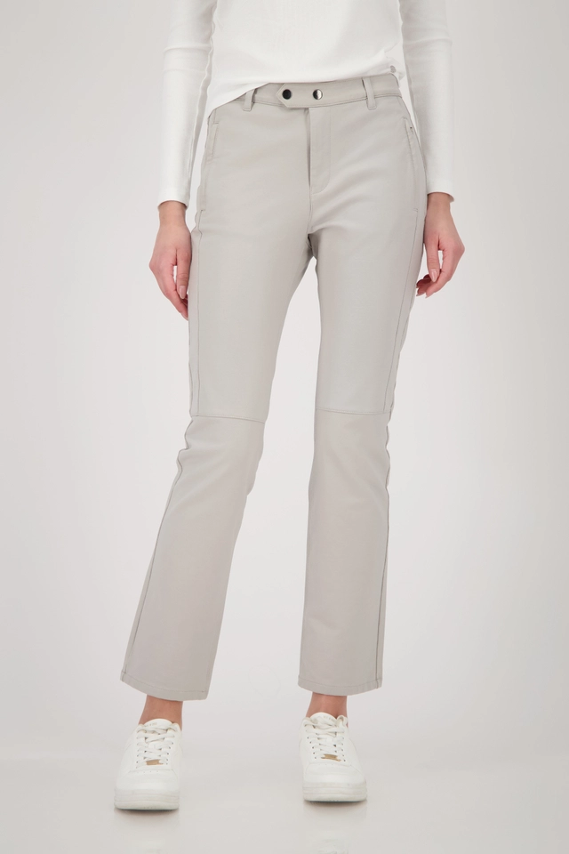 Módne kožené nohavice rovného strihu vyrobené z vysoko kvalitnej bavlnenej zmesi s elastickým materiálom, praktické bočné vrecká so zipsom a zapínaním na patentný gombík pre moderný strih.