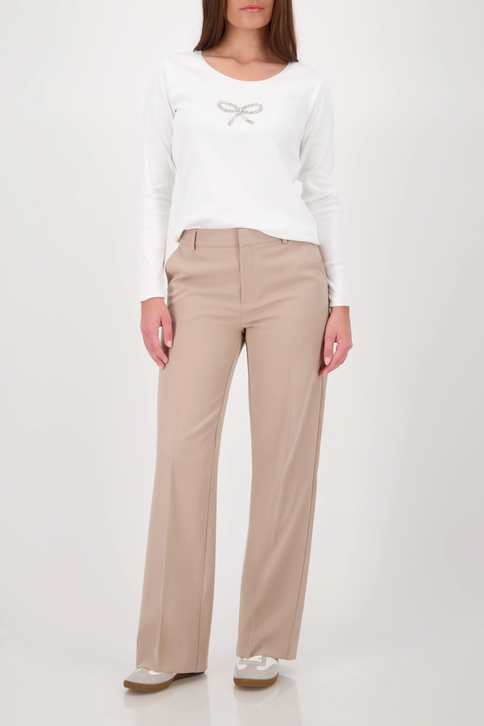 Elegantné rovné kostýmové nohavice z elastického materiálu so záhybmi, bočnými vreckami a štýlovými falošnými zadnými vreckami – na každú príležitosť.