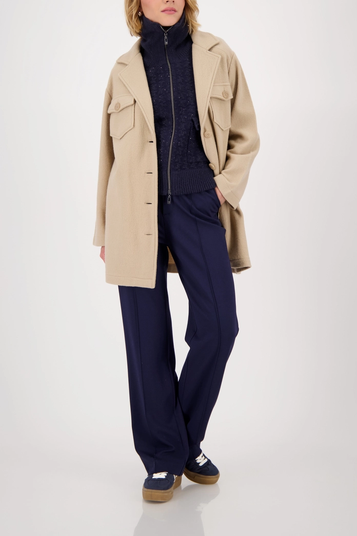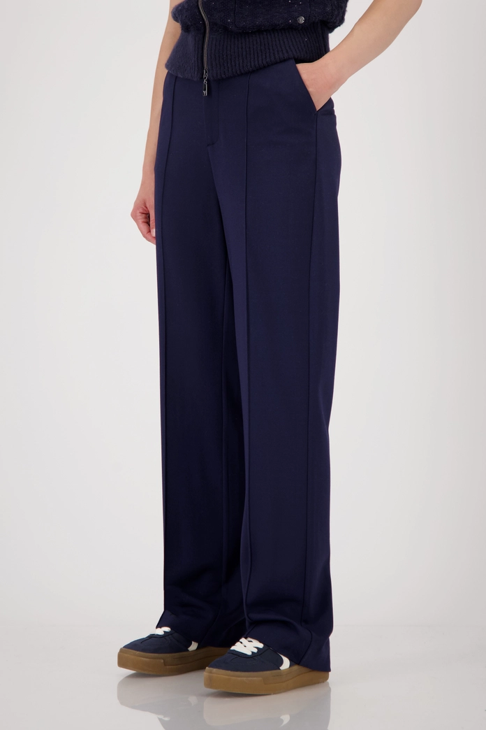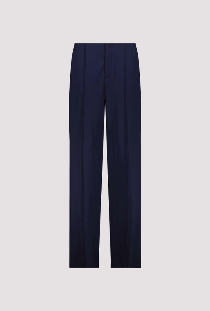 Elegantné kostýmové nohavice zo splývavej viskózy s lemovaním, bočnými vreckami a nadčasovým rovným strihom.