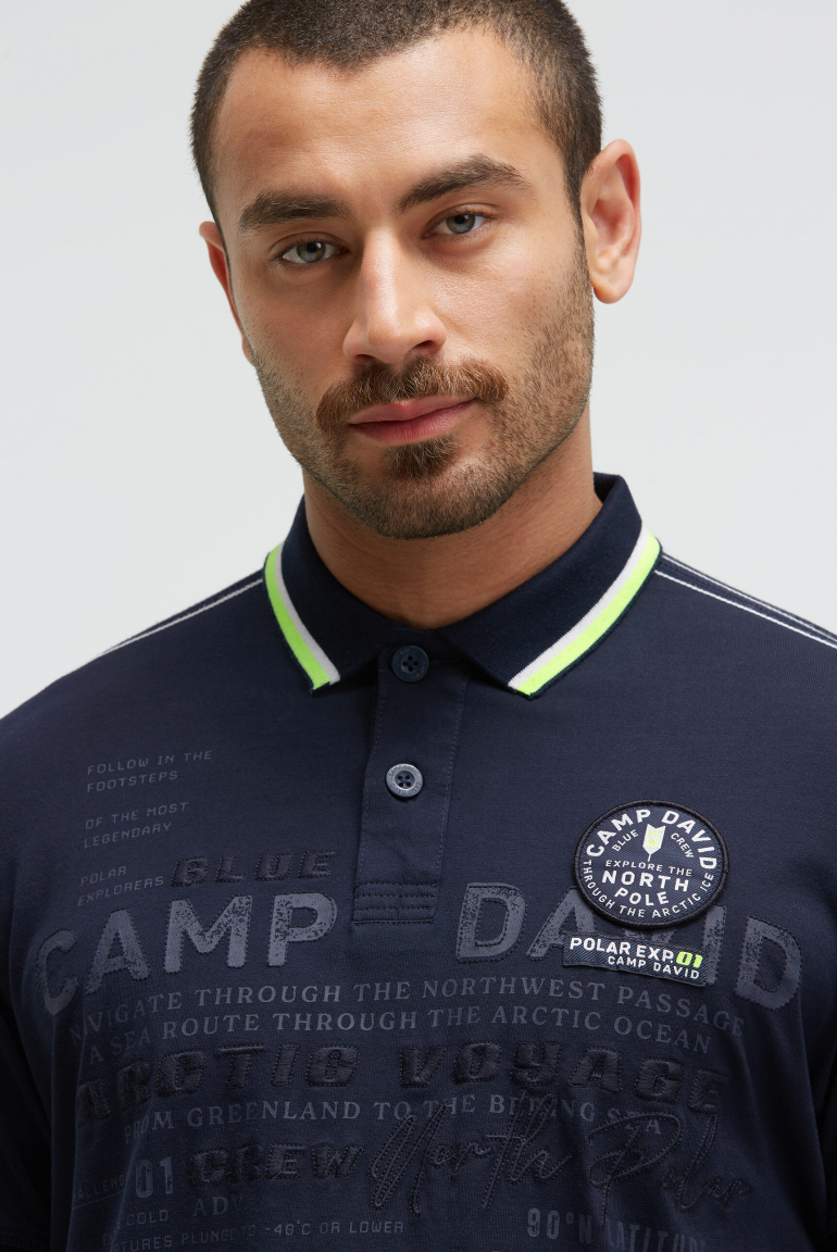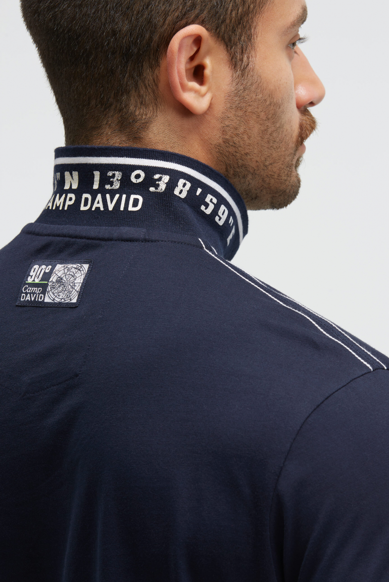 Polo tričko od CAMP DAVID zaručuje elegantný ležérny vzhľad. Jeho tónový artwork je doplnený výšivkami a nášivkami. Pozornosť upúta športový golier s farebným pruhovaným dizajnom. Polo tričko je nadčasovým základným kúskom pánskeho šatníka. Model je vysoký 183 cm a má na sebe veľkosť M.